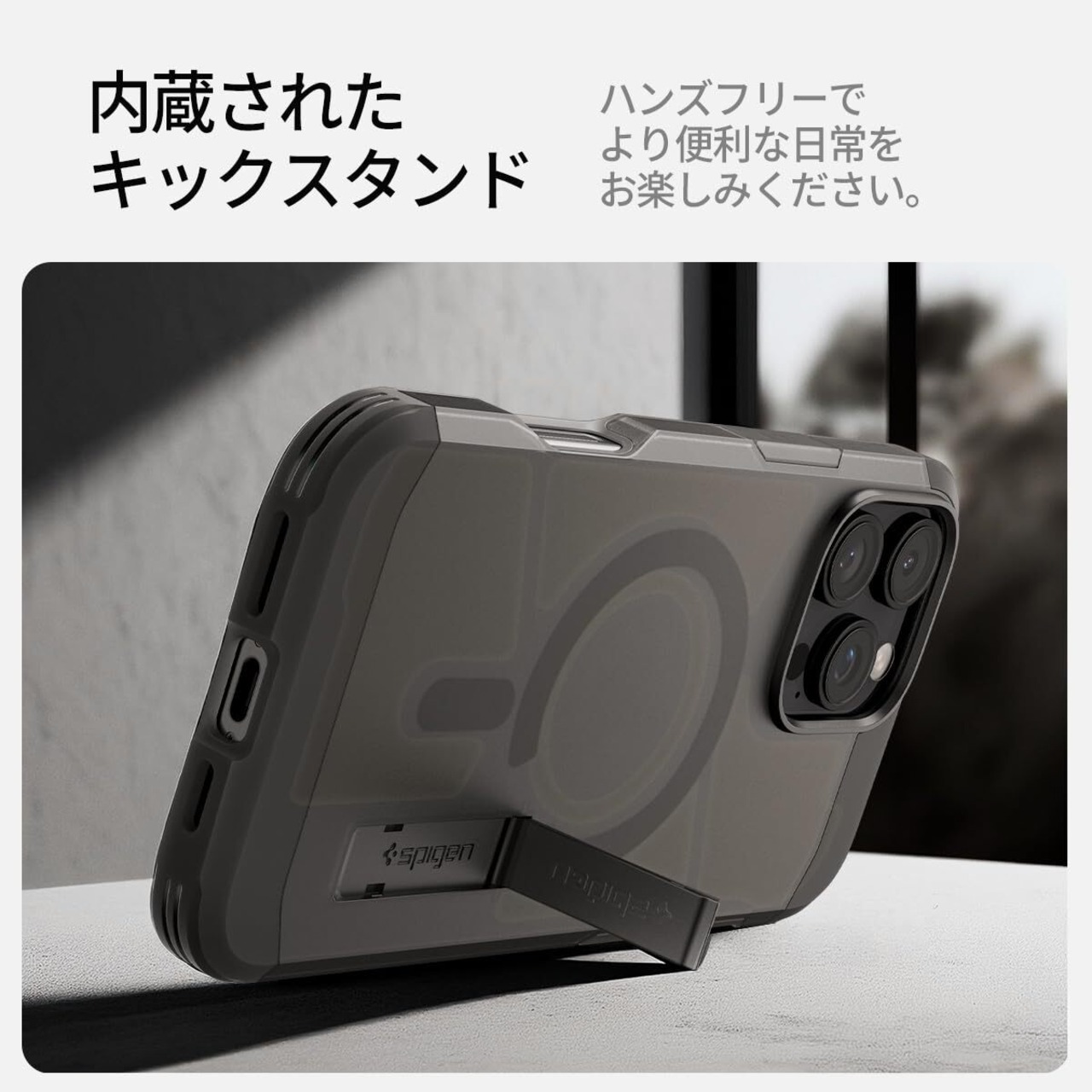 【新着商品】Spigen iPhone 16 Pro Max ケース MagSafe対応 マグネット搭載 スタンド マット 耐衝撃 米軍MIL規格 タフ・アーマー(AI)・マグフィット ACS08502 (フロスト・ブラック) | ニコニコSHOP