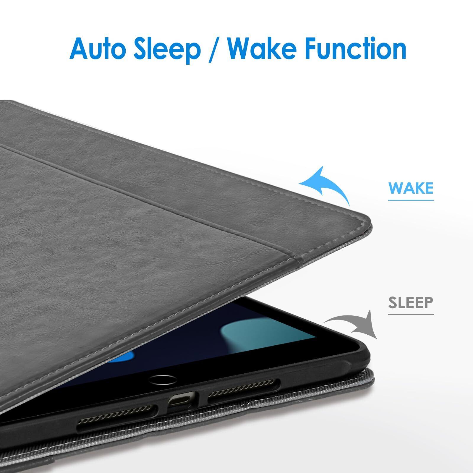 JEDirect iPad 10.2インチ ケース 第9/8/7世代用(2021/2020/2019モデル) Pencilホルダー付き マルチプルのスタンド角度調整 ソフトTPU 保護カバー オートウェイクアップ/スリープ機能付き