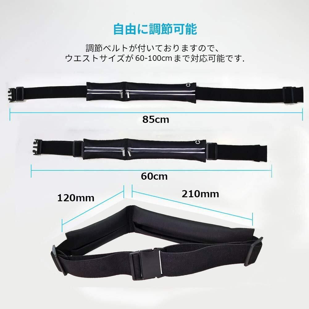 【フィット感抜群の伸縮素材&男女兼用】ポーチ部分は伸縮性のある素材を使用しており、ウエスト部分のサイズは60cm~100cmまで調整可能。ベルトは両側を同時に調節出来るデザインで、締め付け具合も気持ちよく調整できます。軽くてスリムで体にフィットする設計のため、運動時に感じるズレや違和感を大幅に缩减。揺れることが一切無し!