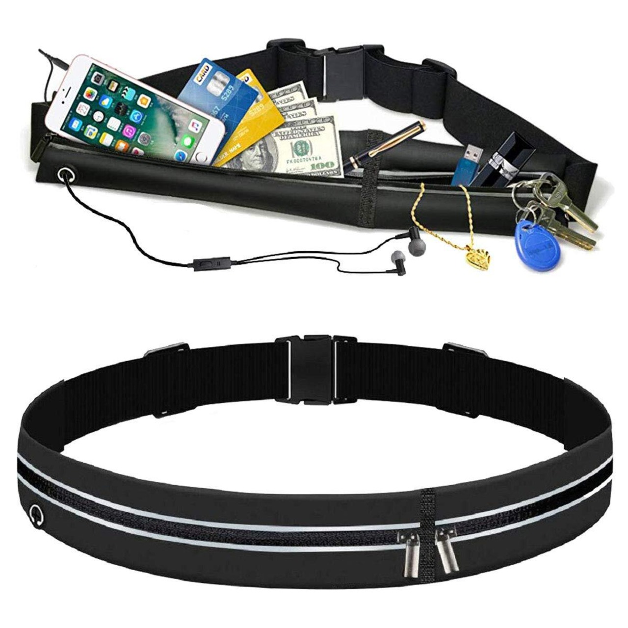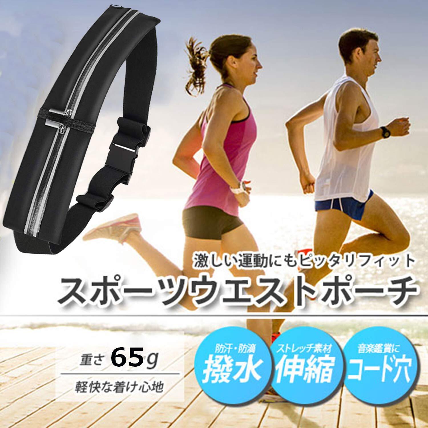 ランニング ポーチ 携帯 ウエスト バッグ ジョギング スマホ ホルダー スポーツ 防水防汗 大容量 超軽量 6.5インチまでスマホに対応 夜間反射素材 ストレッチ素材 男女兼用 ファスナー付き 2つの独立ポケッ イヤホンホール付き 登山 サイクリング ウォーキング (ブラック)