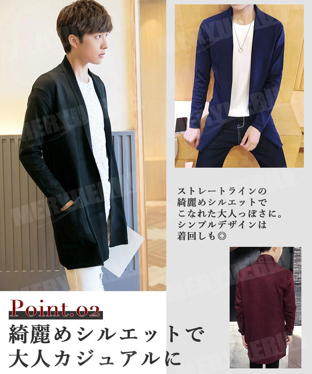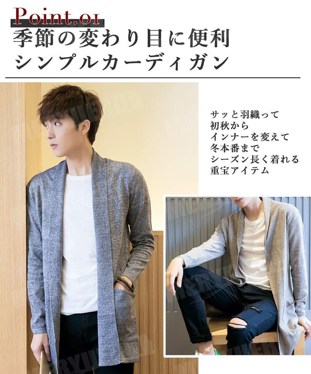 【2022最新】[メリュエル] カーディガン S~2XL ミドル丈 ソリッドカラー スマート デザイン ニットカーディガン 春 秋 冬 メンズ