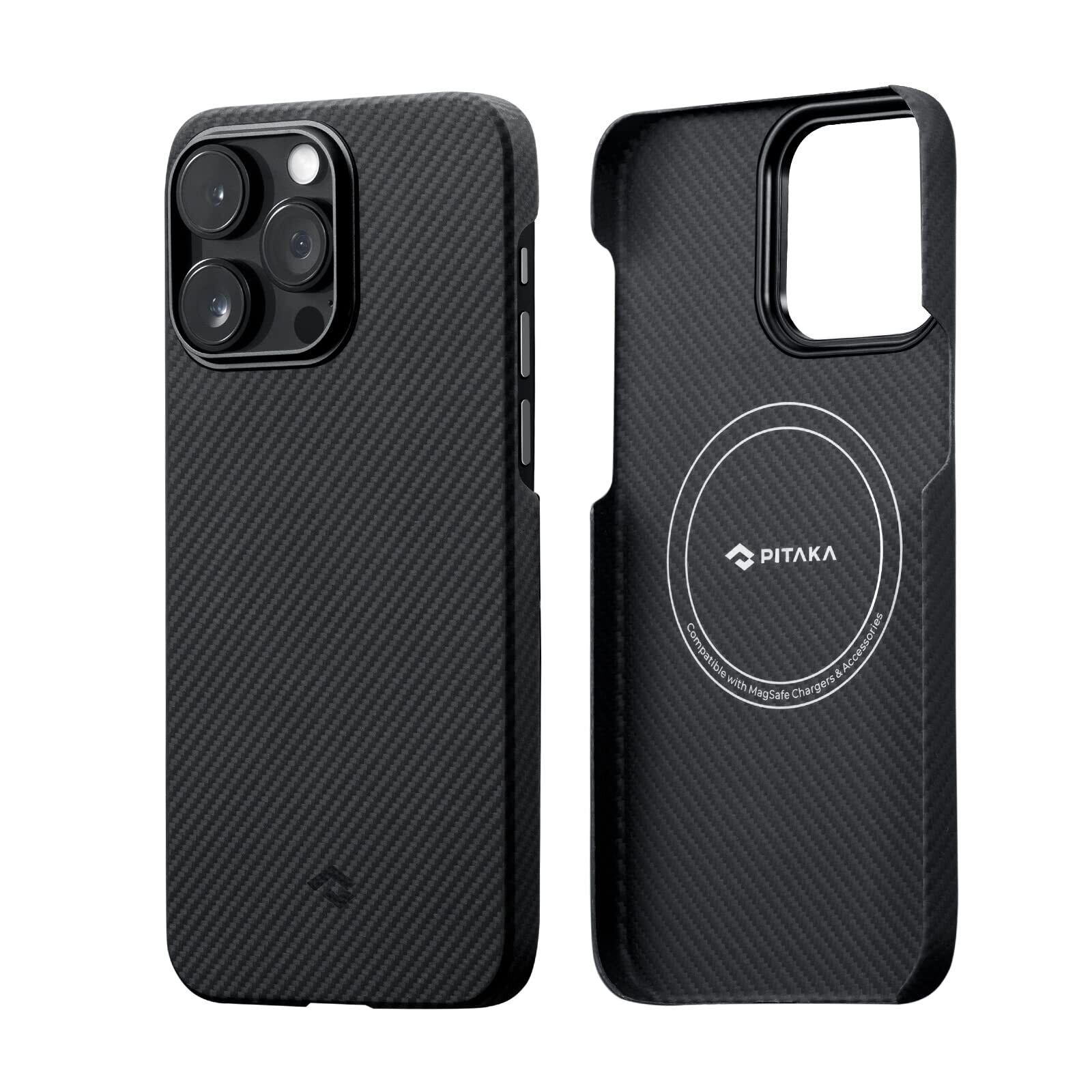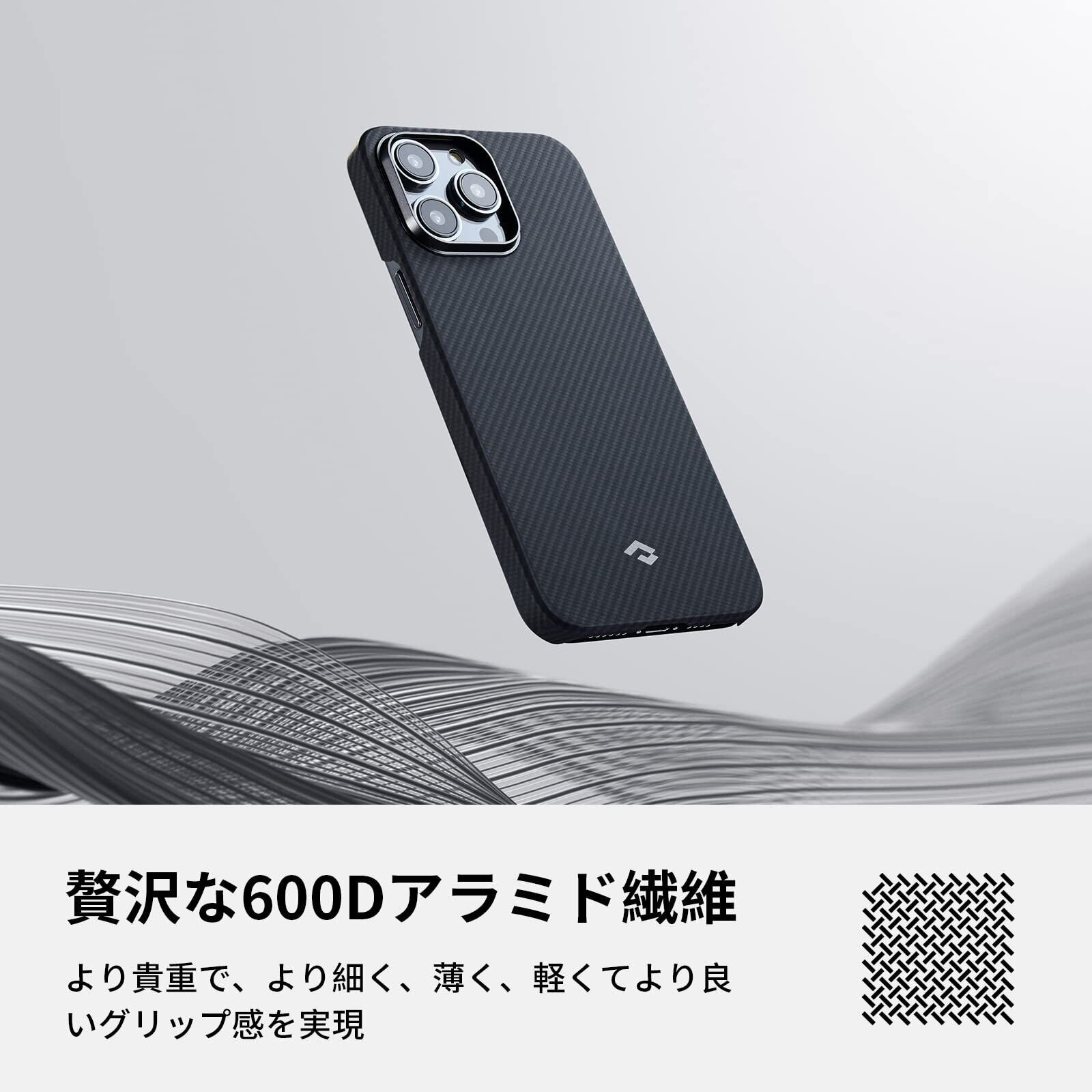 「PITAKA」 iPhone14 Pro Max ケース MagEZ Case 3 600Dアラミド繊維製 超極薄・超軽量 マグネット内蔵 高級なカーボン風 MagSafe ワイヤレス充電対応 超薄 耐衝撃 MagSafe対応 ミニマリスト シンプル デザイン(600D 黒/グレーツイル柄)