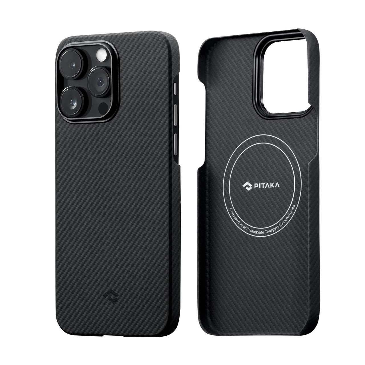 【特価商品】「PITAKA」 iPhone14 Pro Max ケース MagEZ Case 3 600Dアラミド繊維製 超極薄・超軽量 マグネット内蔵 高級なカーボン風 MagSafe ワイヤレス充電対応 超薄 耐衝撃 MagSafe対応 ミニマリスト シンプル デザイン(600D 黒/グレーツイル柄)