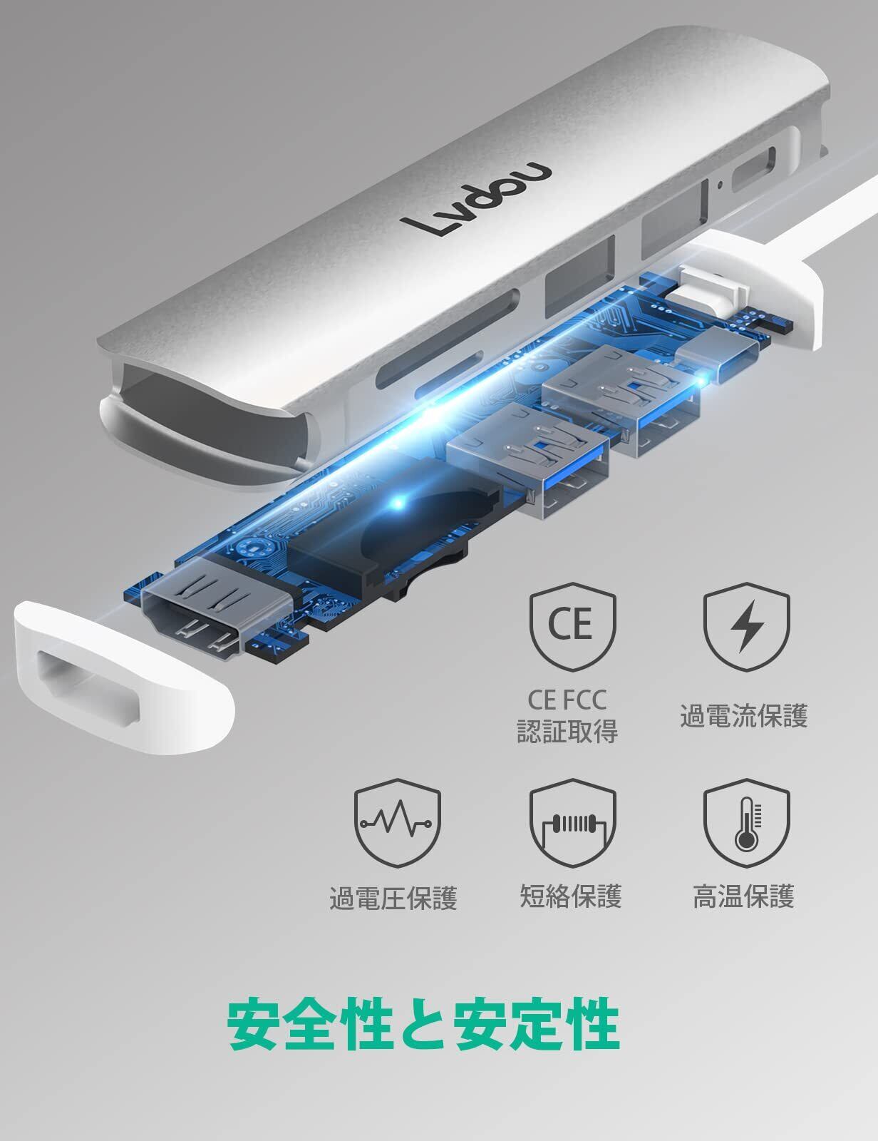 Lvdou USB C ハブ 6-in-1 Type-C アダプタ|100W PD充電・4K HDMI・MicroSD/SDカードリーダー・USB 3.0ポート搭載|MacBook Pro/Air (2016-2024)、iPad Pro (2018-2024)、iPhone 15/16、Surface Pro 9/8/7/Go、Chromebook対応 ノートPC/タブレット用|適格請求書発行可