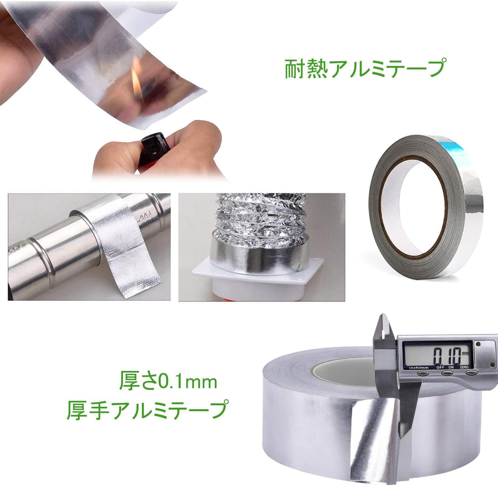 【厚手アルミテープ】:丈夫な厚手タイプのアルミテープ。軟質アルミ箔0.1mm。厚みがあって丈夫。しわができにくくて仕上がりがとても良い。