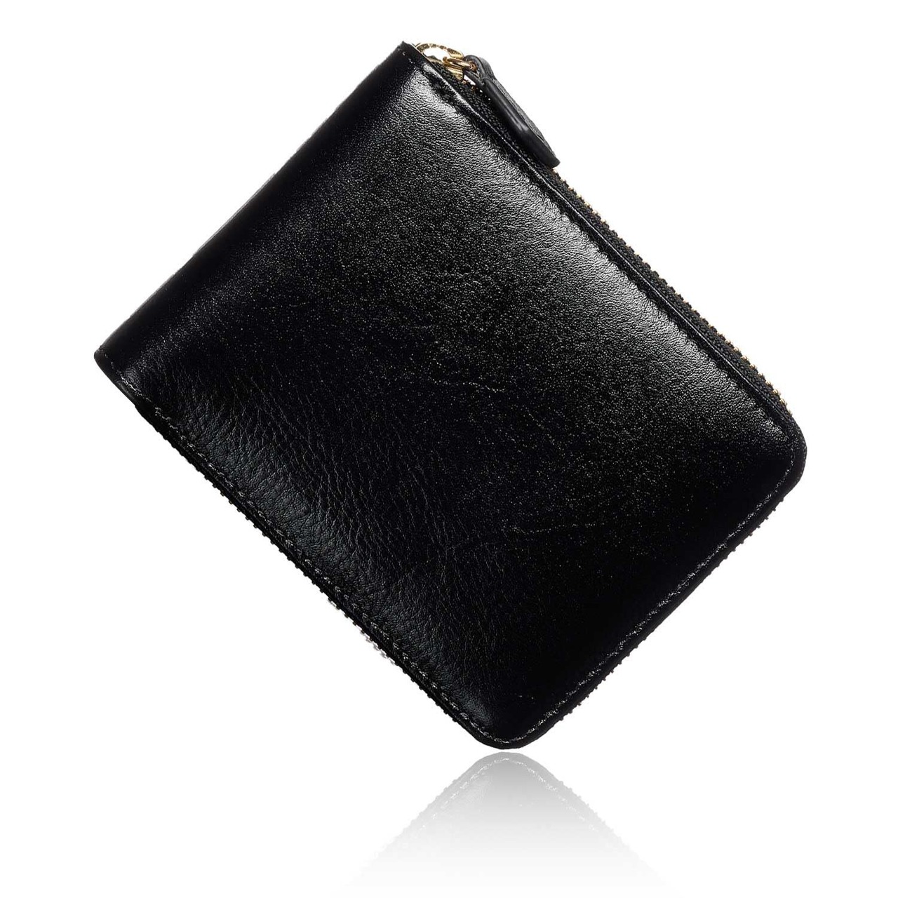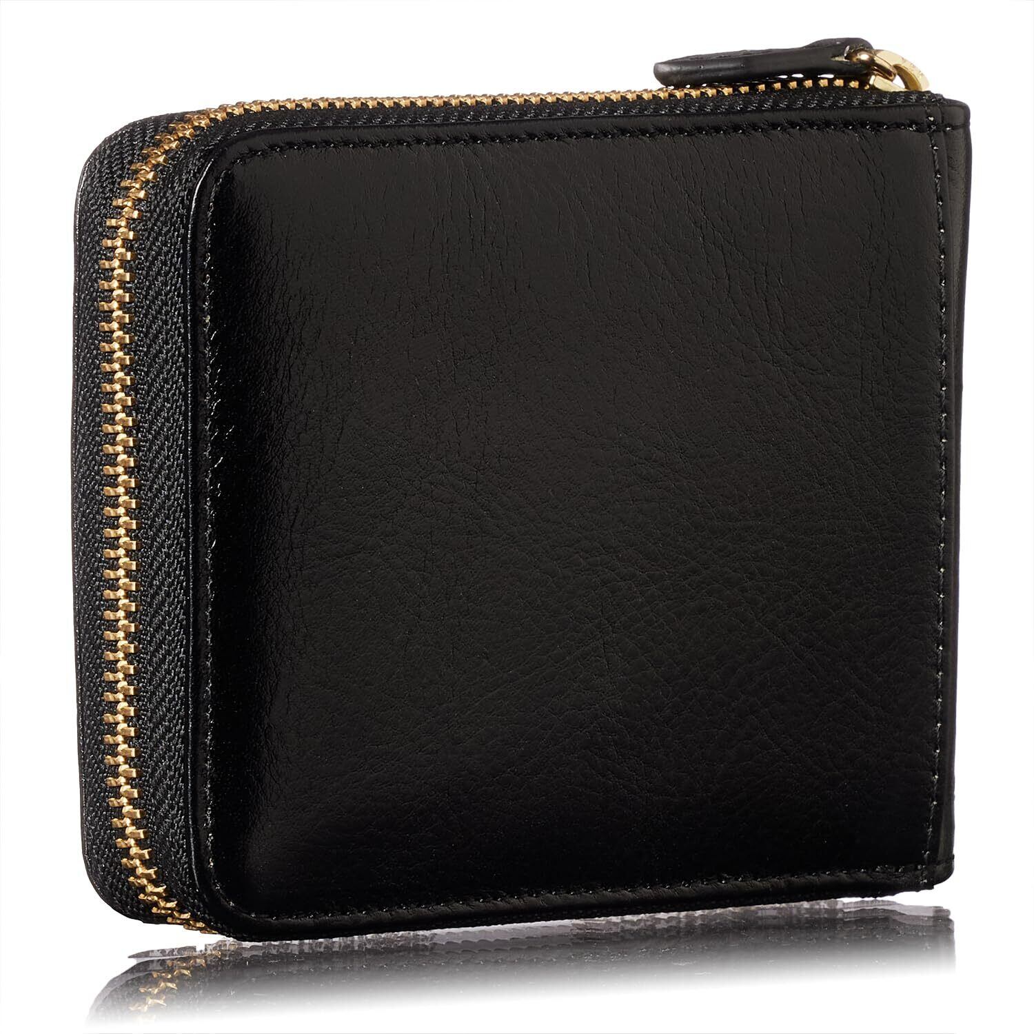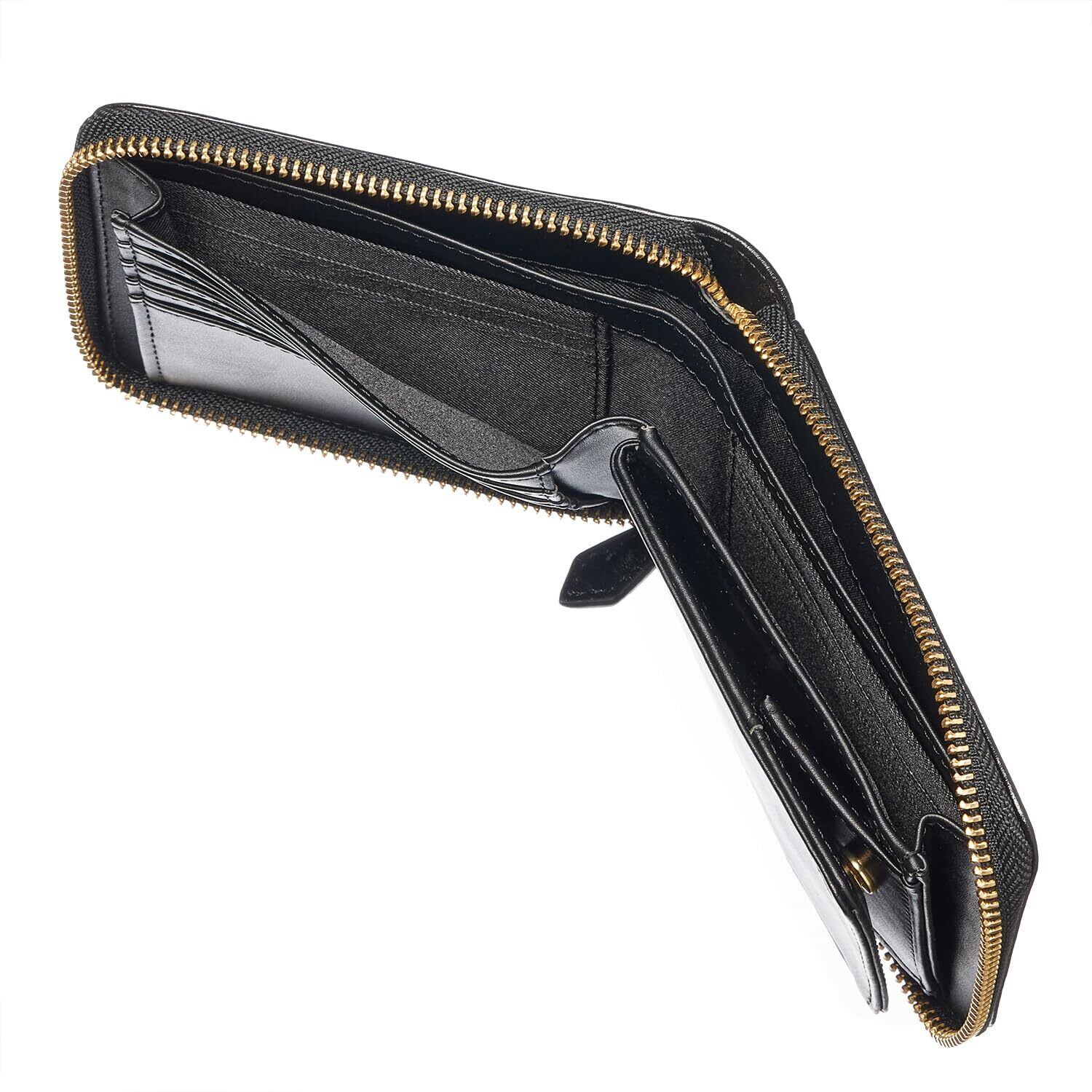 [VOICE] ヴォイス 財布 メンズ 牛革 二つ折り 『技あり』厚くならない ラウンドファスナー 使いやすい BOX型小銭入 プレゼント 用 ギフト 箱入り(Black ブラック)