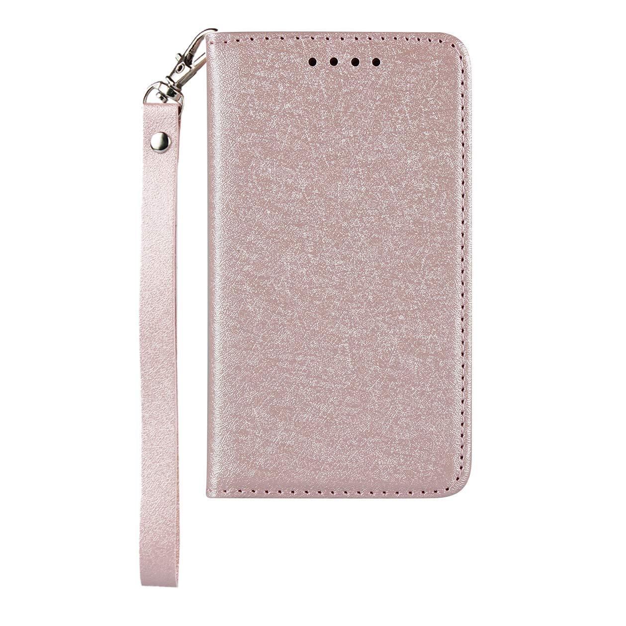 Elick Rakuten Mini ケース カバー 薄型 手帳型 高級PUレザー 楽天モバイル Rakuten Mini ケース カバー マグネット式 ベルトなし ストラップ付き カード収納 楽天ミニ ケース ローズゴールド
