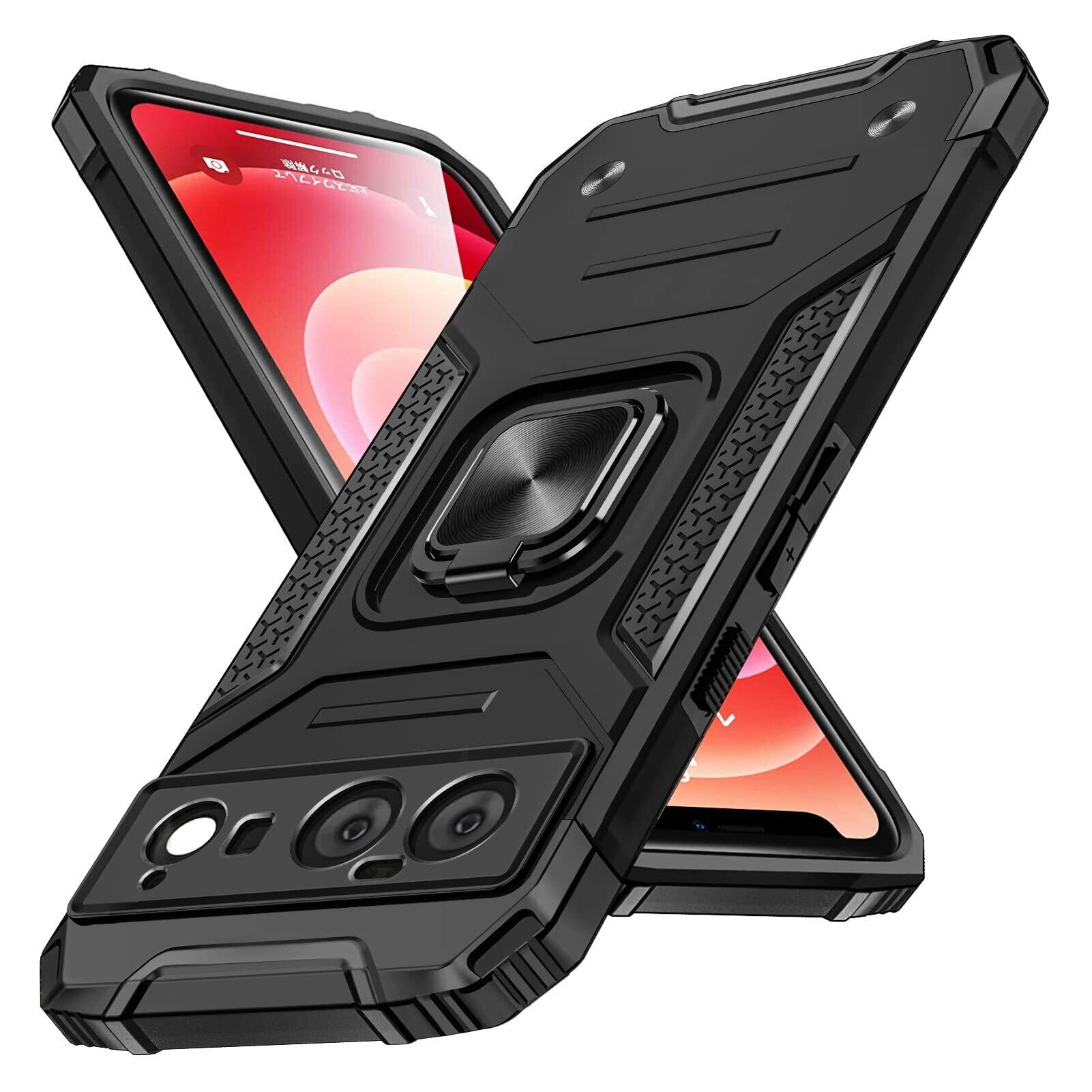 Google pixel6 ケース pixel 6 カバー リング付き 耐衝撃 PC 衝撃吸収 米軍MIL規格 車載ホルダー対応 全面保護 アイフォン Google pixel6 薄型 軽量 スタンド機能 TPU カメラ保護 携帯カバー 人気 ブラック 黑110-KM-PX6-01CP
