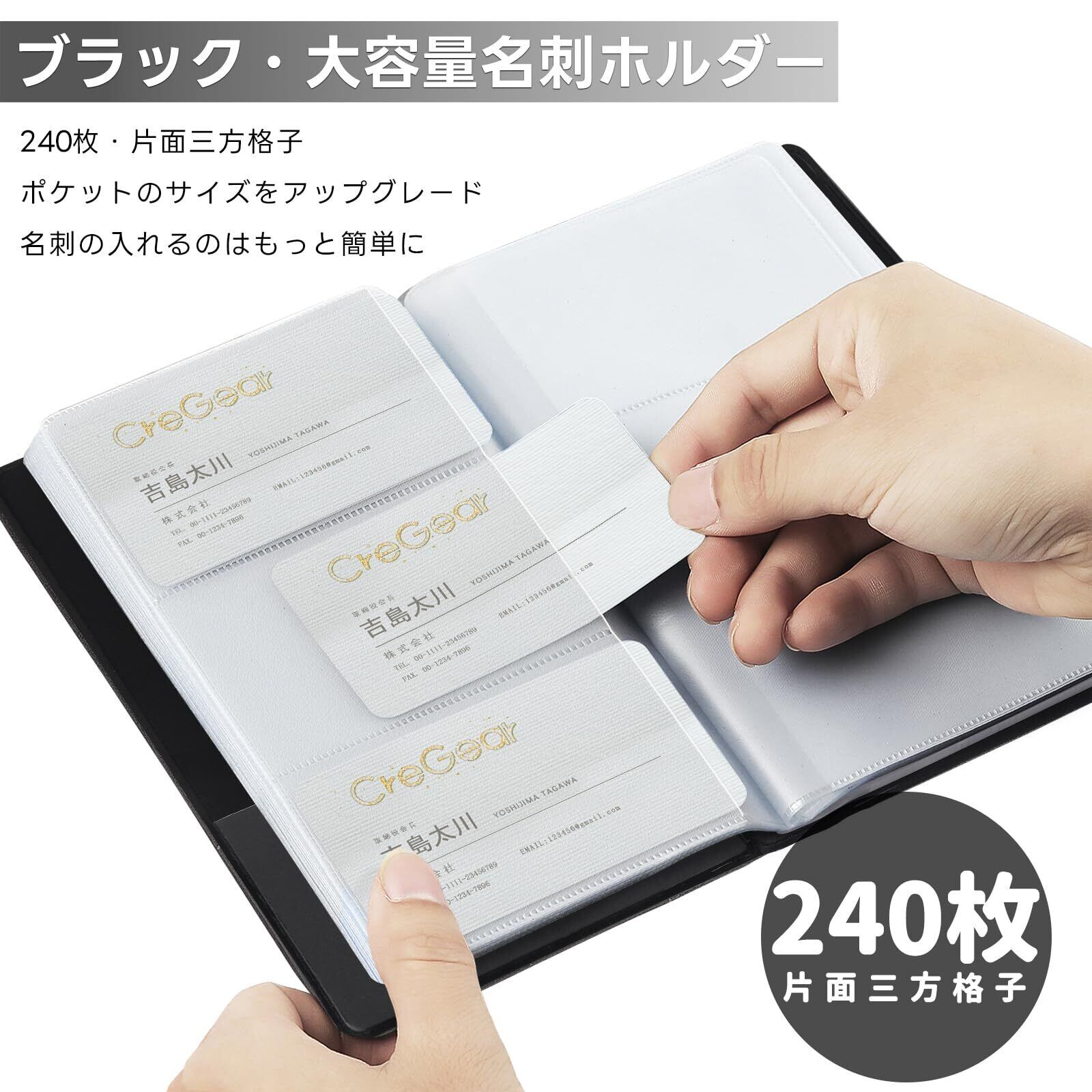CREGEAR 名刺ホルダー 240枚 名刺ファイル 収納 大容量 名刺フォルダー クレジットカードケース 名刺入れ ビジネス用 分類管理 シンプル おしゃれ 男女兼用 ブラック