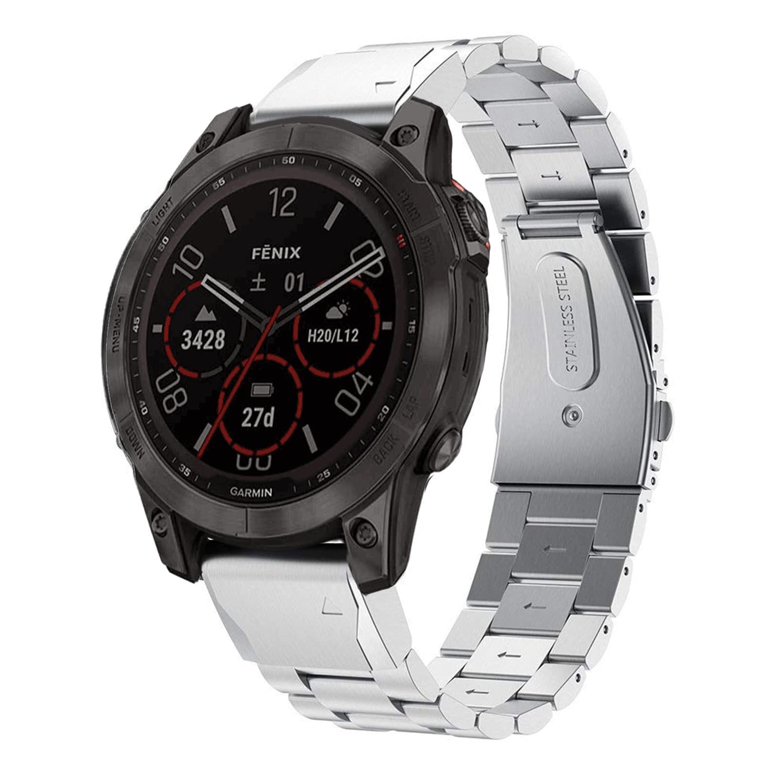 ガーミン s62 バンド Compatible with GARMIN Fenix 7/epix/Approach S60/S62/Instinct/Instinct 2/ForeAthlete 745/945/935//Fenix 5/5 Plus/6/6 pro ステンレス製 交換用 22mm ベルト ガーミン フェニックス7 ビジネス風 調整工具付き(シルバー)
