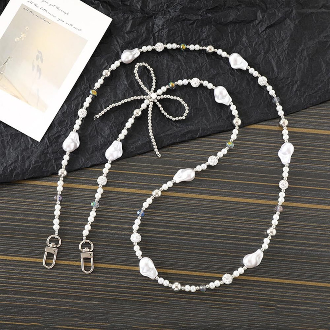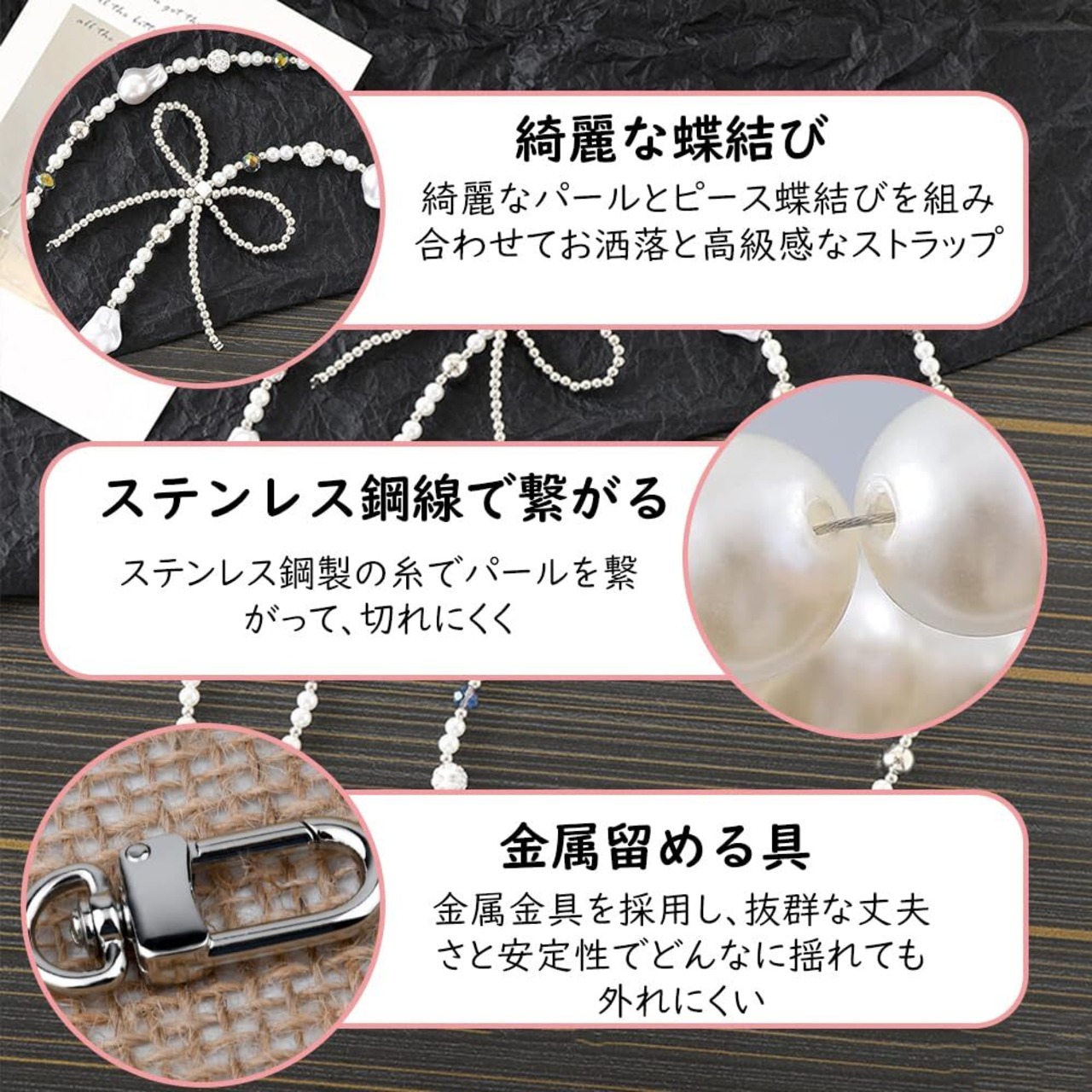 【多様な使用方式】:●商品内容:120㎝パールストラップ×1本、透明タグパッチ×1枚入り。全機種のスマホに対応できるだでなく、 ポーチバッグ、お財布、巾着バッグ、かごバッグ、透明なバッグ、ハンド バッグ、携帯、キーなどにも適用します。光沢のあるチェーンは複数の用途があるだけでなく、あなたのスマホバッグをファッショナブルで、魅力を追加できます。