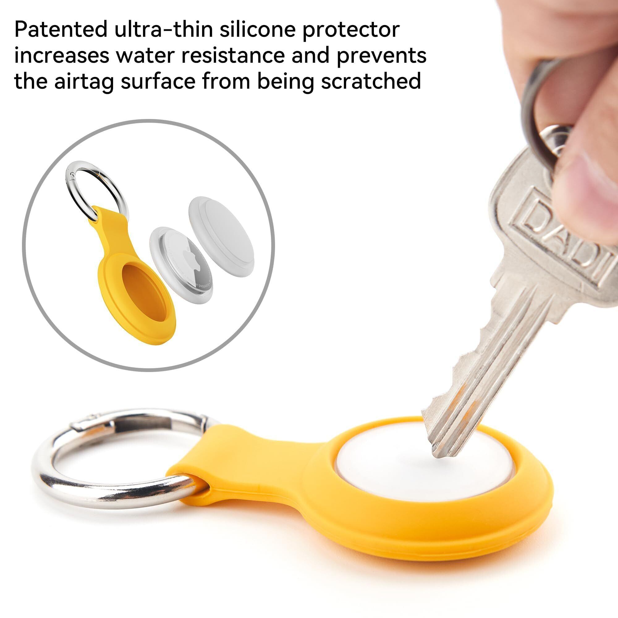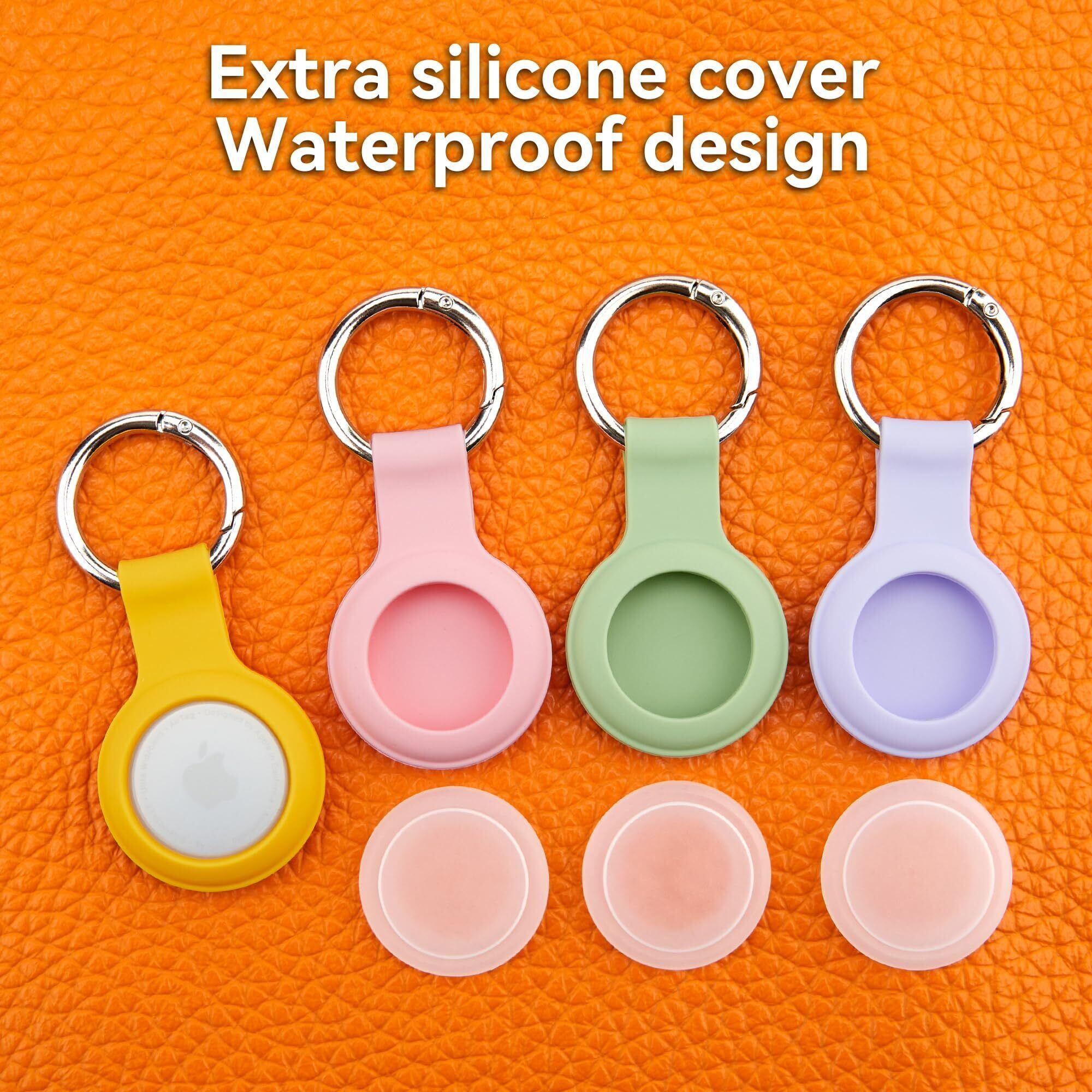 シリコーン製 エアタグホルダー (4個パック) IPX8 防水 & 超耐久性 エアタグキーホルダー Apple Airtag対応 | 保護エアタグケース キーリング付き 財布 荷物 猫 犬 ペットの首輪用 (マルチカラー)
