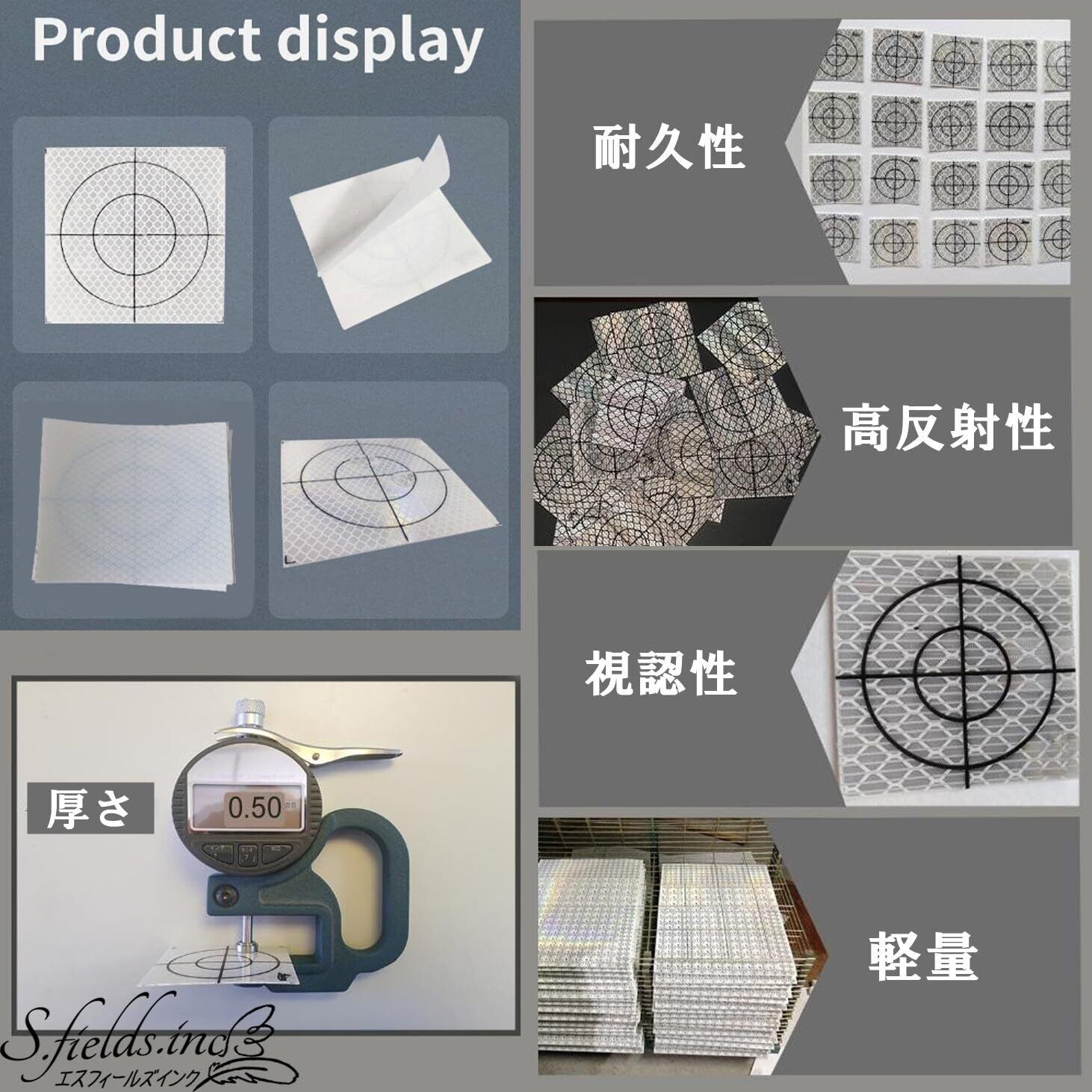 S.fields.inc 反射シート 測量用 調査ターゲット 20枚セット トータルステーション プリズムシール (30mm)