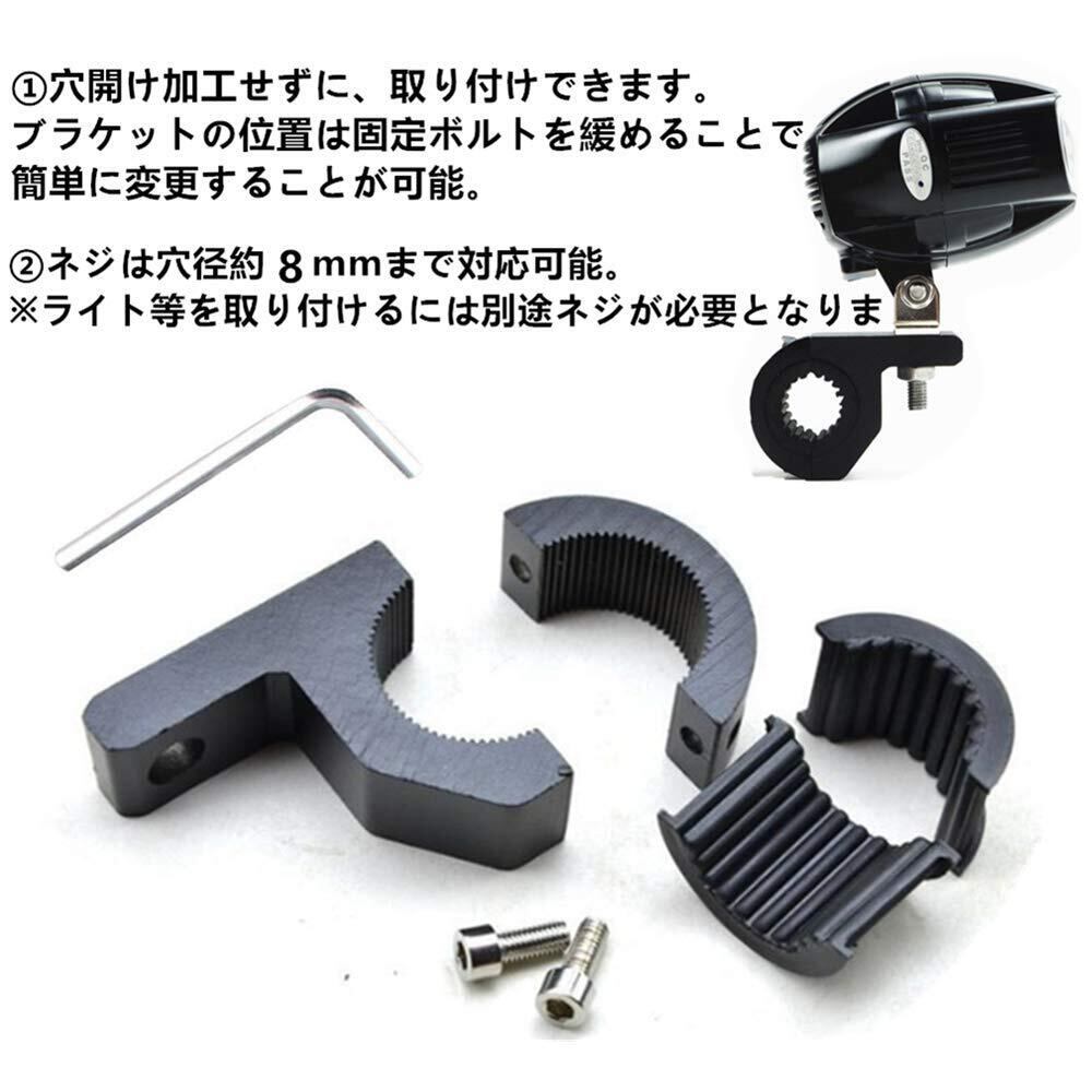 サムコス バイクバンパー ステー 取り付けステー 穴あけ不要 取付簡単 車用 フォグランプステー 作業灯 前照灯 補助灯 ブラケット スタンド パイプ 挟み込み汎用 (4個セット、黒)