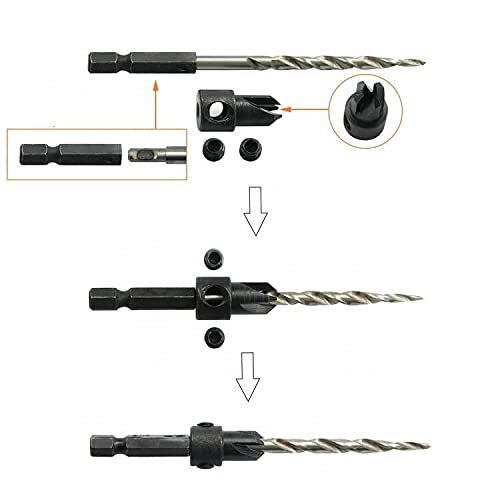 Wolfride 5本セット 木工ドリルビット 皿穴ドリルビット 六角軸 皿取り錐ドリルセット HSSドリルビット 穴あけ 面取りカッター diy 工具 レンチ付き
