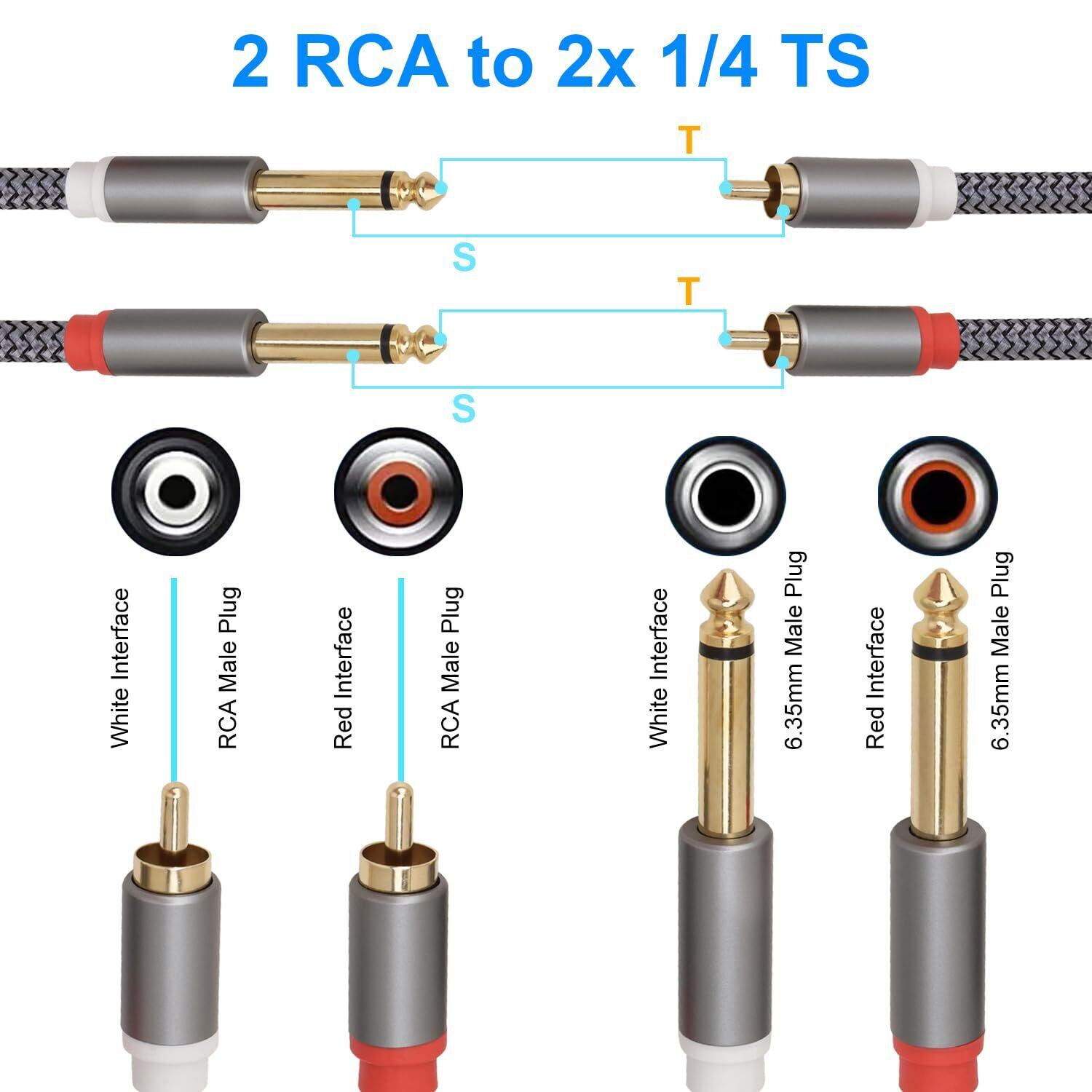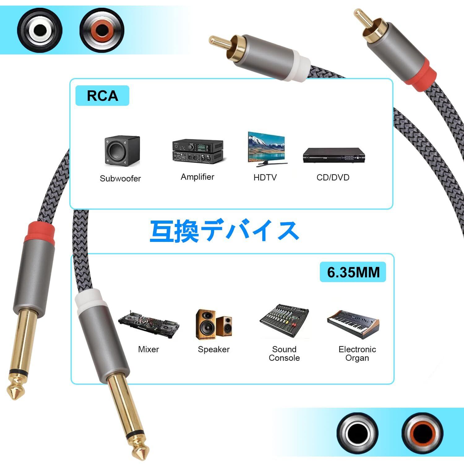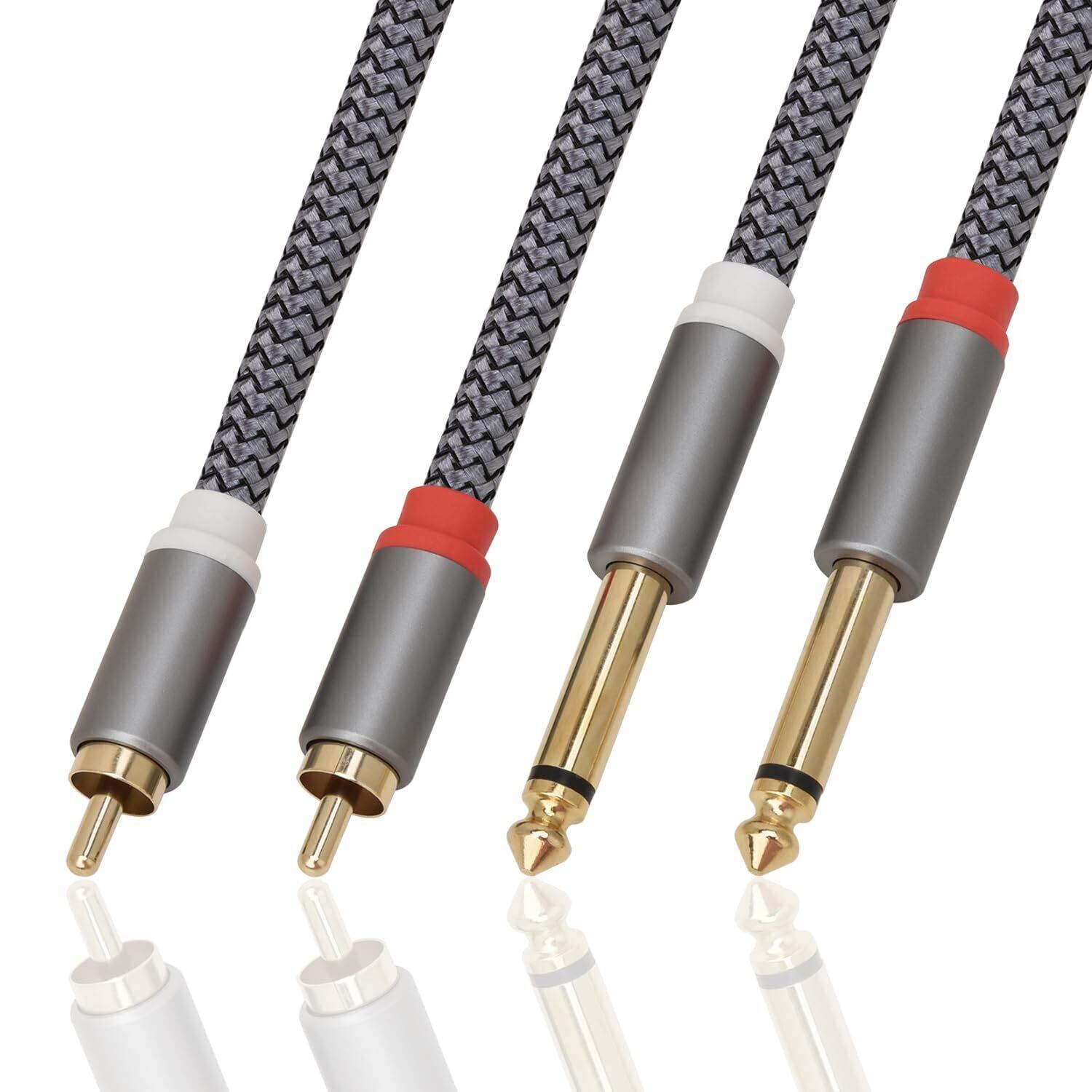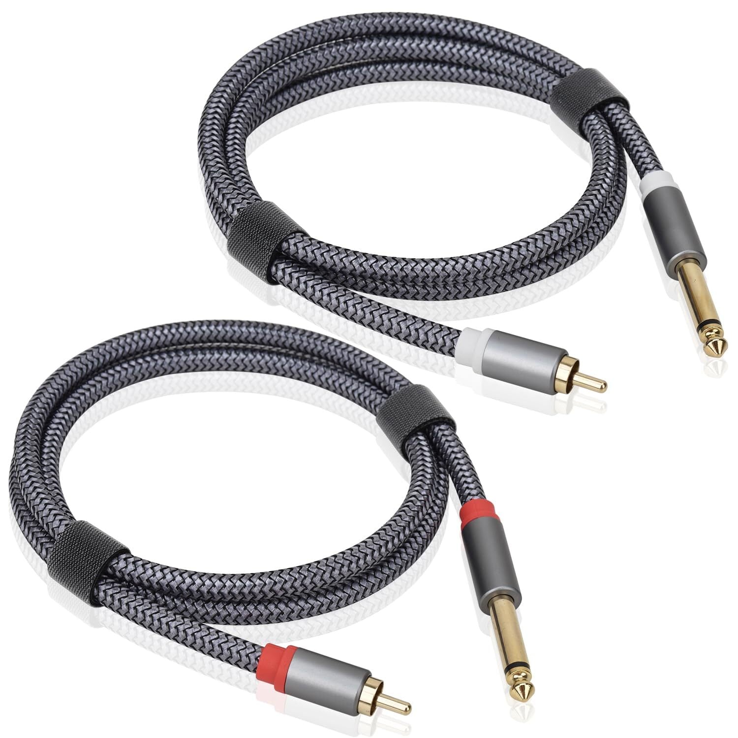 【RCA フォン デュアル オーディオ変換ケーブル】デュアル 6.35mm(1/4インチ)モノラル-デュアルRCAケーブルは、アンバランス方式のステレオフォーンジャック搭載の機器と、ステレオフォノジャック搭載の機器を接続できるようにデザインされています.楽器用オーディオ機器に適した高性能で多彩なフルレンジベースを提供し、高いパフォーマンスを実現します.音楽を聞くこと等に最適な選択です