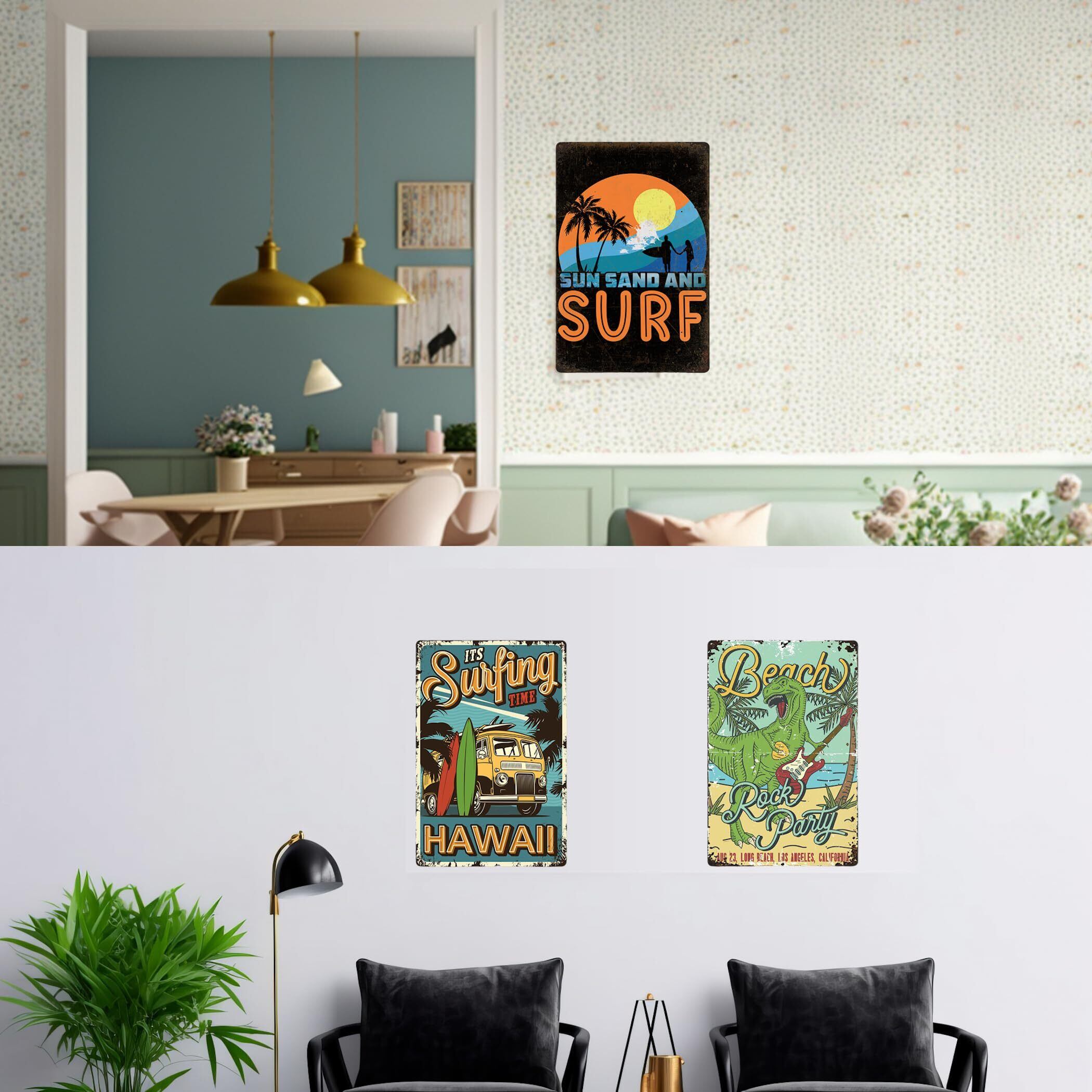Lezalic ブリキ 看板 サーフ ビーチ 壁飾り アメリカン プレート インテリア レトロ 雑貨 ヴィンテージ風 アンティーク (SURF5)