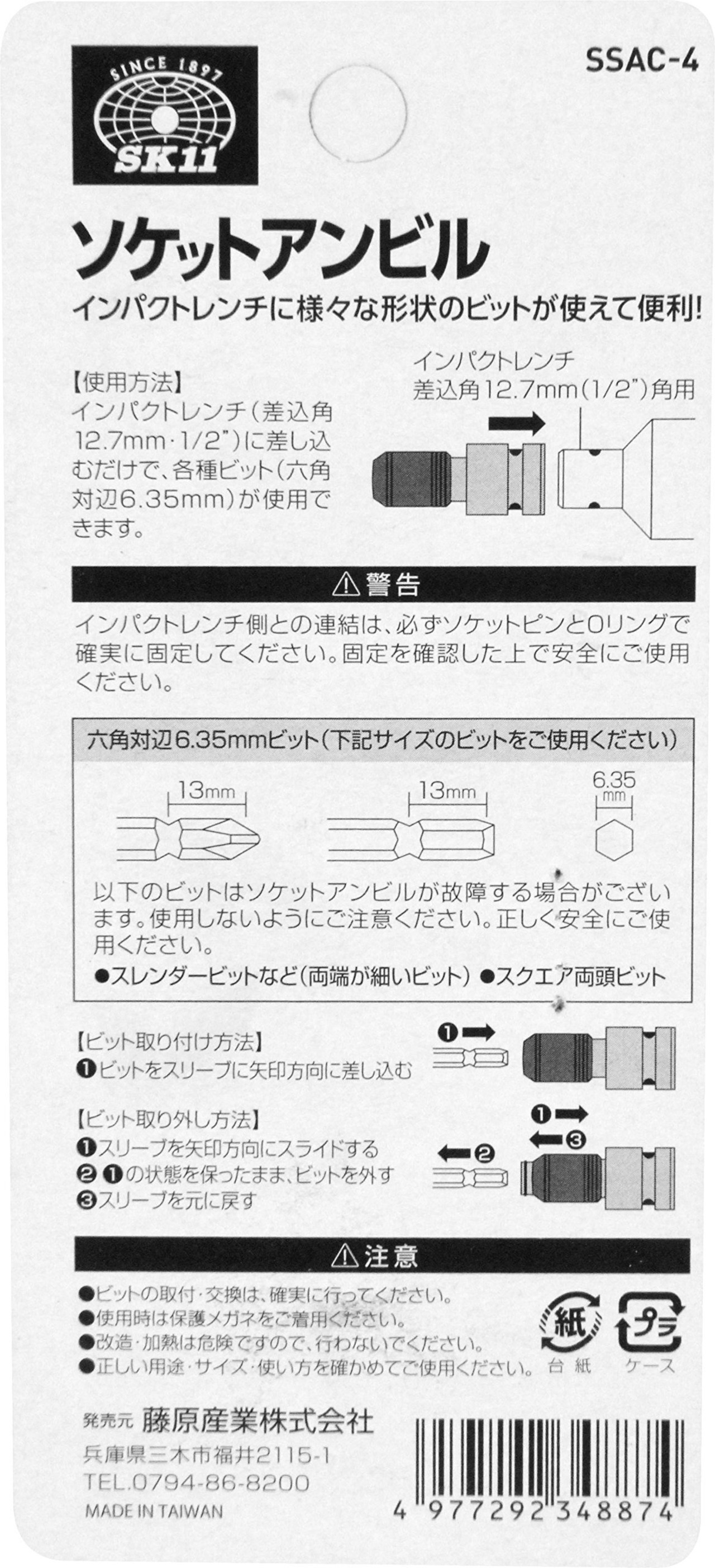 SK11(エスケー11) インパクトレンチ用 ソケットアンビルチャック 差込角12.7mm SSAC-4