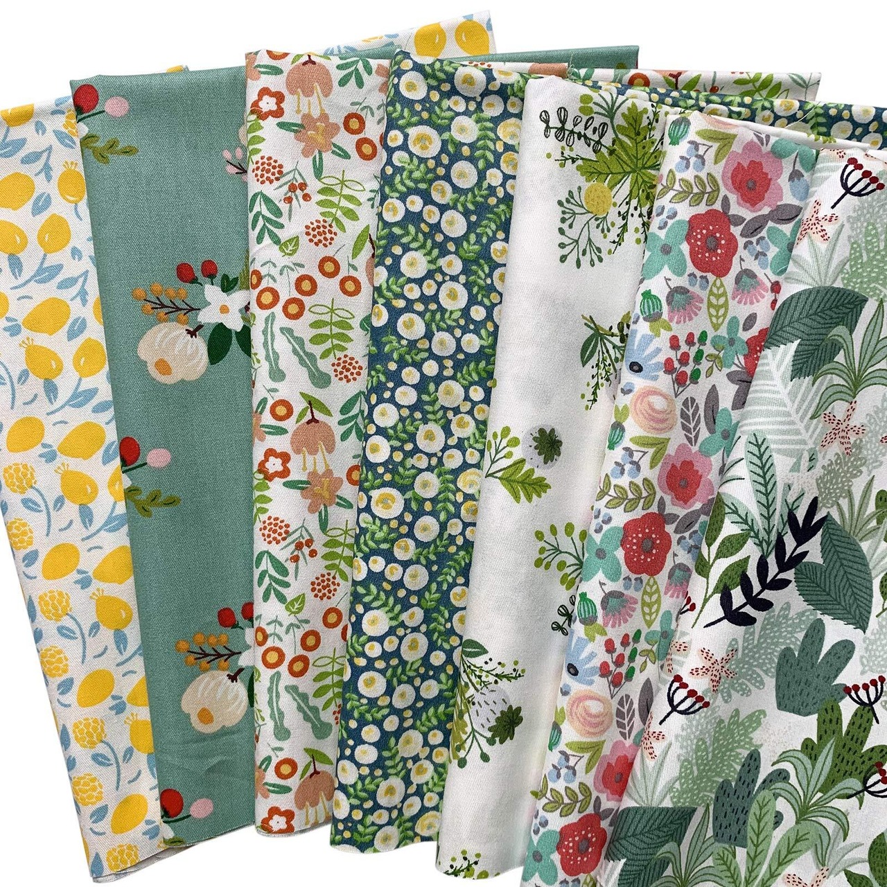 7枚 北欧風 棉生地 可愛い カットクロス ポーチ ぬいぐるみ 手芸用 パッチワーク用 布 セット 46x56cm (小花、サボテン)