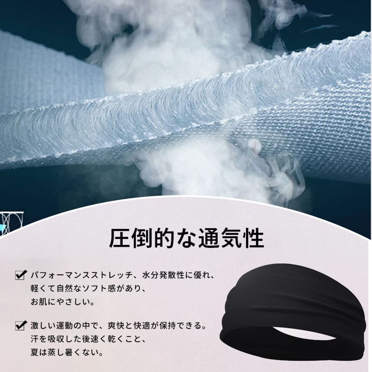 【通気性&伸縮性】通気性の優れた素材を使用している為、様々なスポーツでお気軽にご使用いただけます。適度な伸縮性で、女性の方はもちろん、男性でも程よくフィットし、激しい動いてもズレにくい。また、幅が太いので小顔に見え、どんな頭の形にも合います。