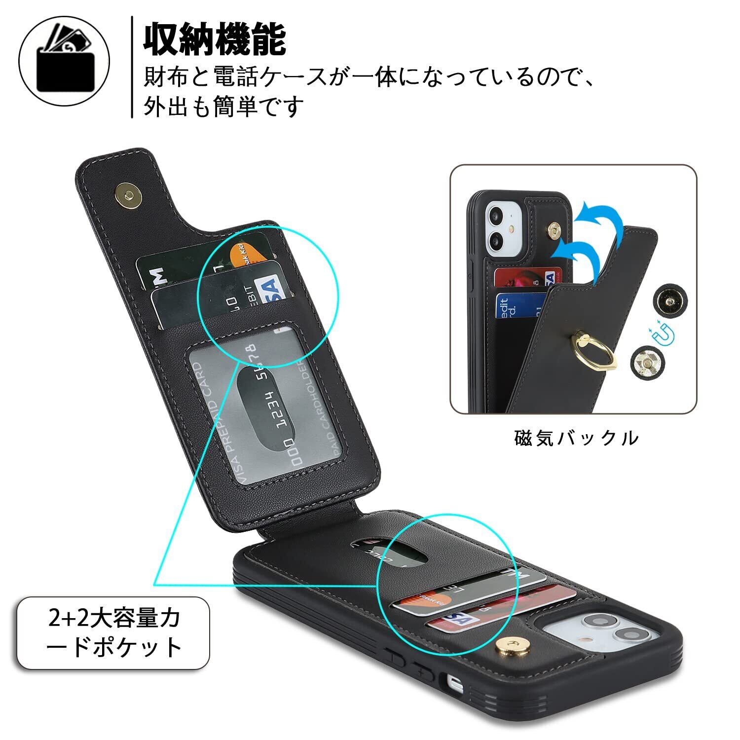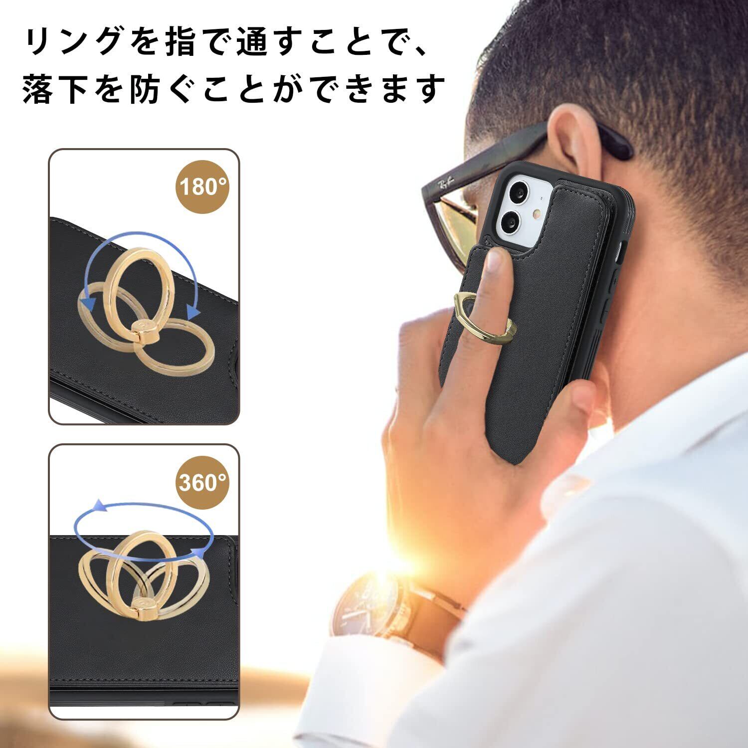 【Hamany】 iPhone11ケース アイフォン11 ケース リング ヒョウ柄 スマホケースiphone11 耐衝撃 背面 カード収納(iphoneケース11/あいふぉん11/いphone11/アイホン11 6.1インチ対応)-ブラック