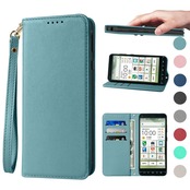 【在庫セール】BASIO4 KYV47 ケース 手帳型 高質PUレザー BASIO4 KYV47 カバー KYOCERA BASIO 4 ケース 耐衝撃 内蔵マグネット開閉式 ベルトなし スマホケース おしゃれ カードポケット スタンド機能 便利 スプラット同梱 携帯ケース ヘイズブルー | ニコニコSHOP