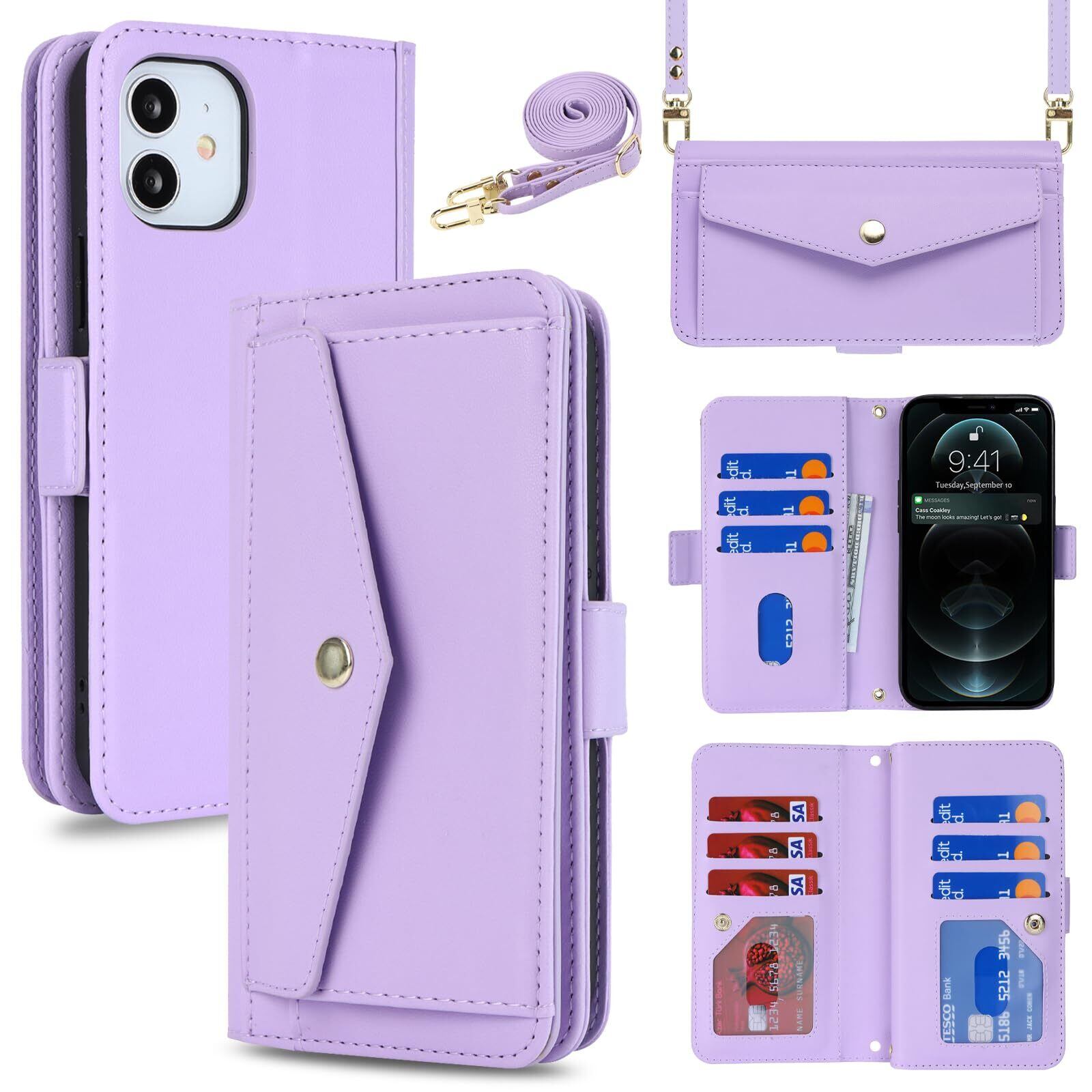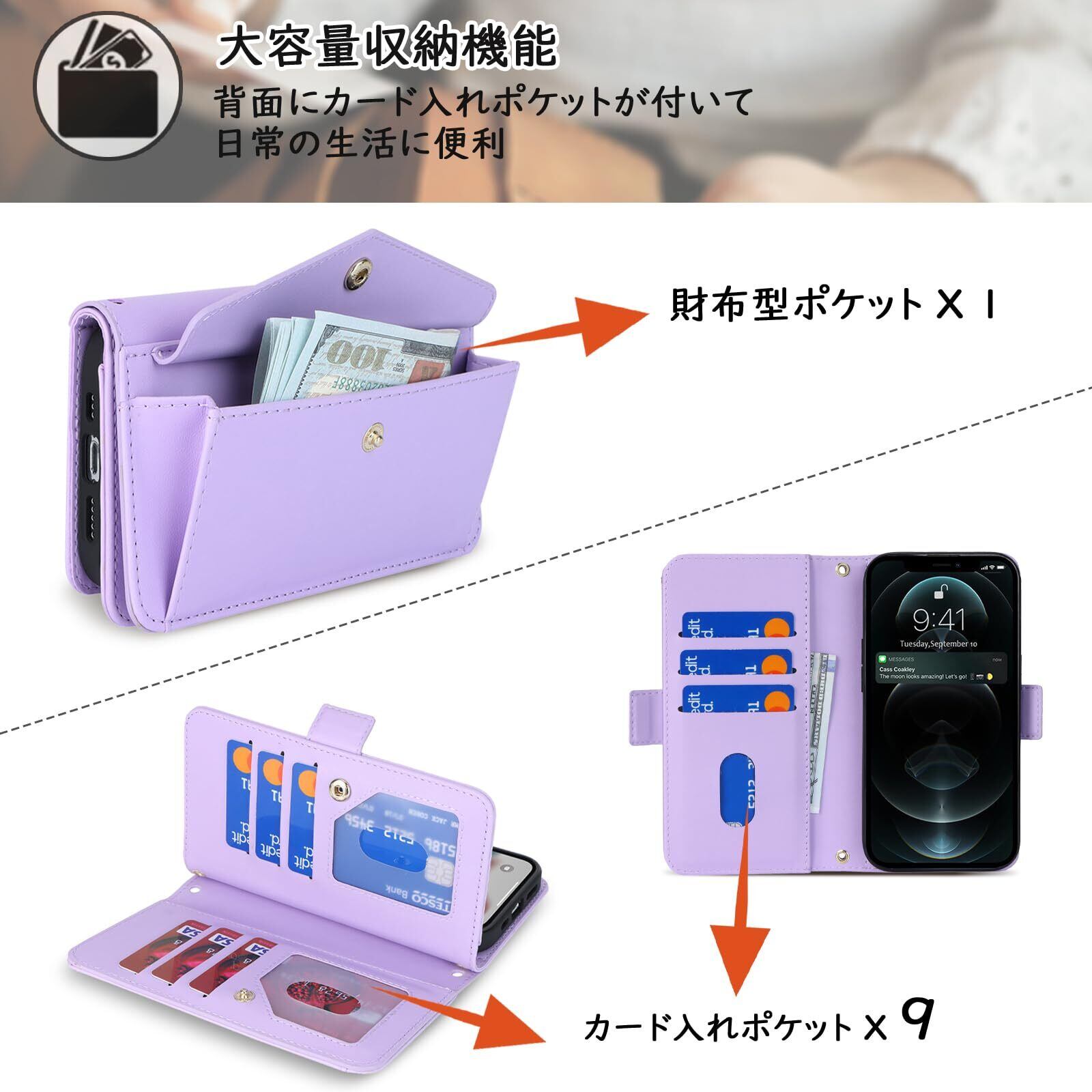【Hamany】 iphone12 ケース ショルダータイプ iphone12pro ケース 手帳型 カード収納 大容量 スマホケース iphone 12 スタンド機能 財布型 耐衝撃 全面保護 iphone12pro ケース ショルダー 肩掛け 斜めかけ カバー -パープル