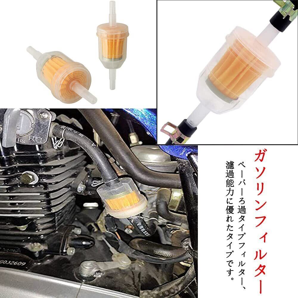 【幅広い応用】内径6mm、8mmパイプ用インラインガス燃料フィルター。 これらのフィルターは広範囲のガソリン車や機械に適しています。バイク、自動車、航空、建設機械など多くに使われます。