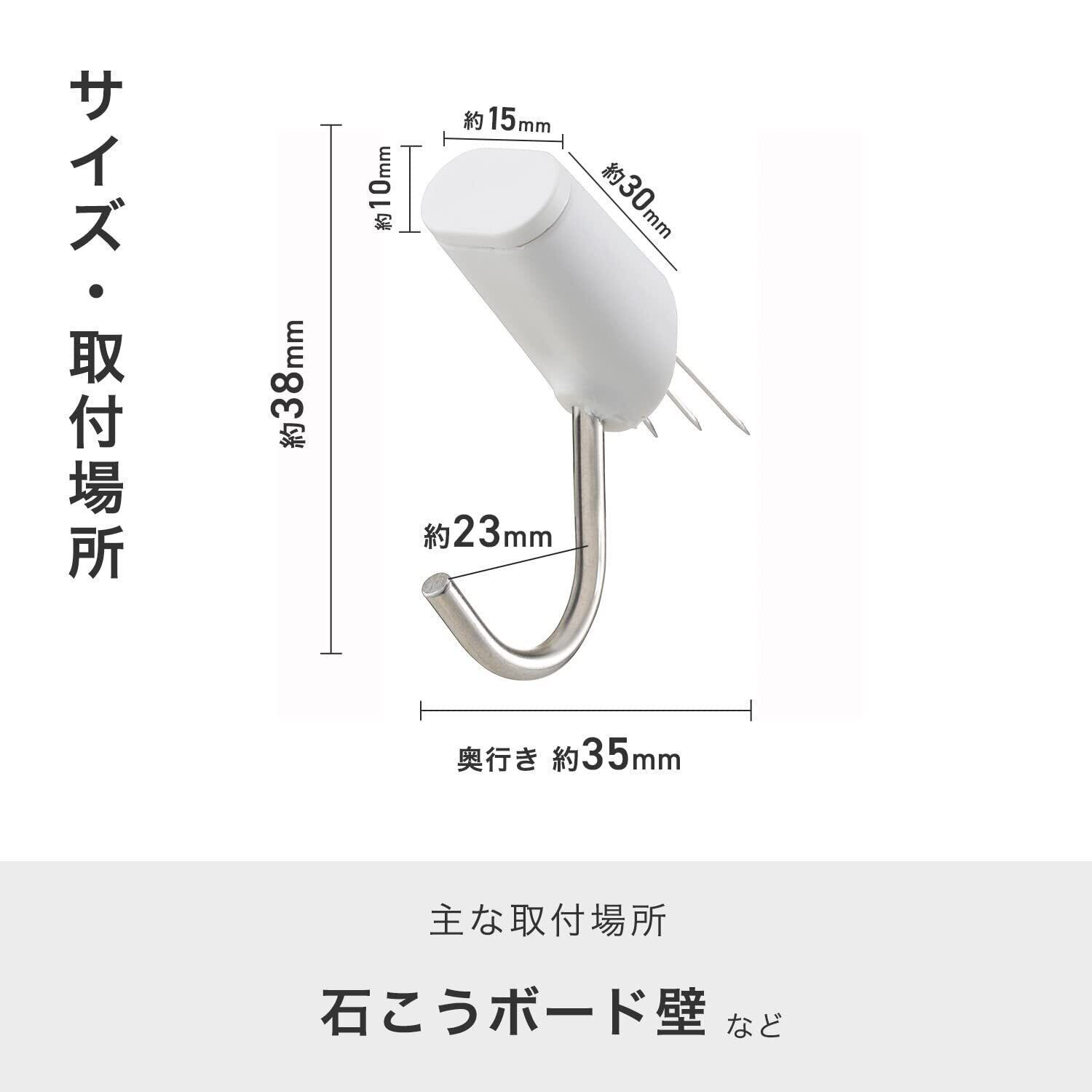 レック(LEC) 穴の目立たない ピンフック 3個入 耐荷重 2kg ホワイト