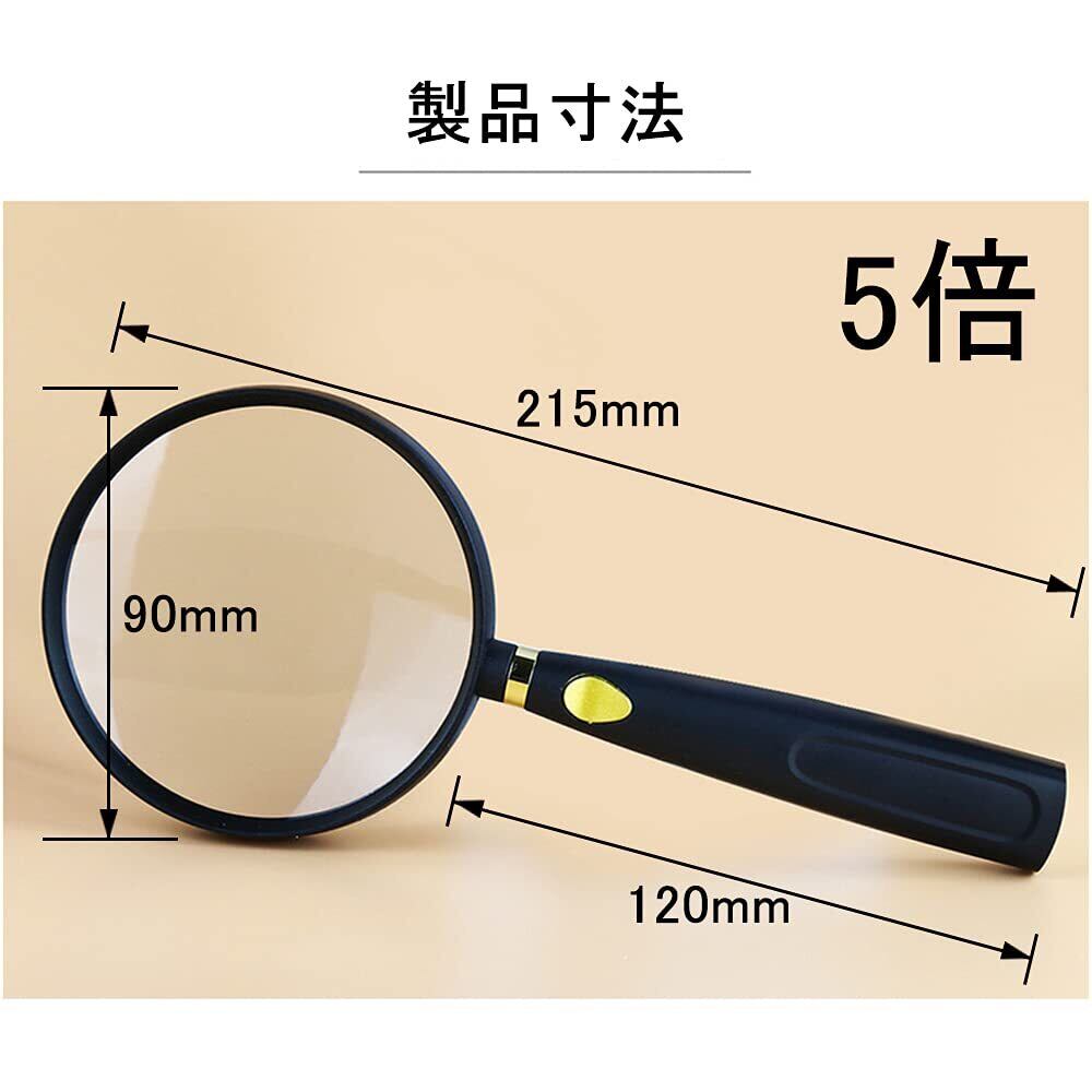 拡大鏡 手持ちルーペ 読書ルーペ 虫眼鏡 拡大レンズ 老眼 90mm