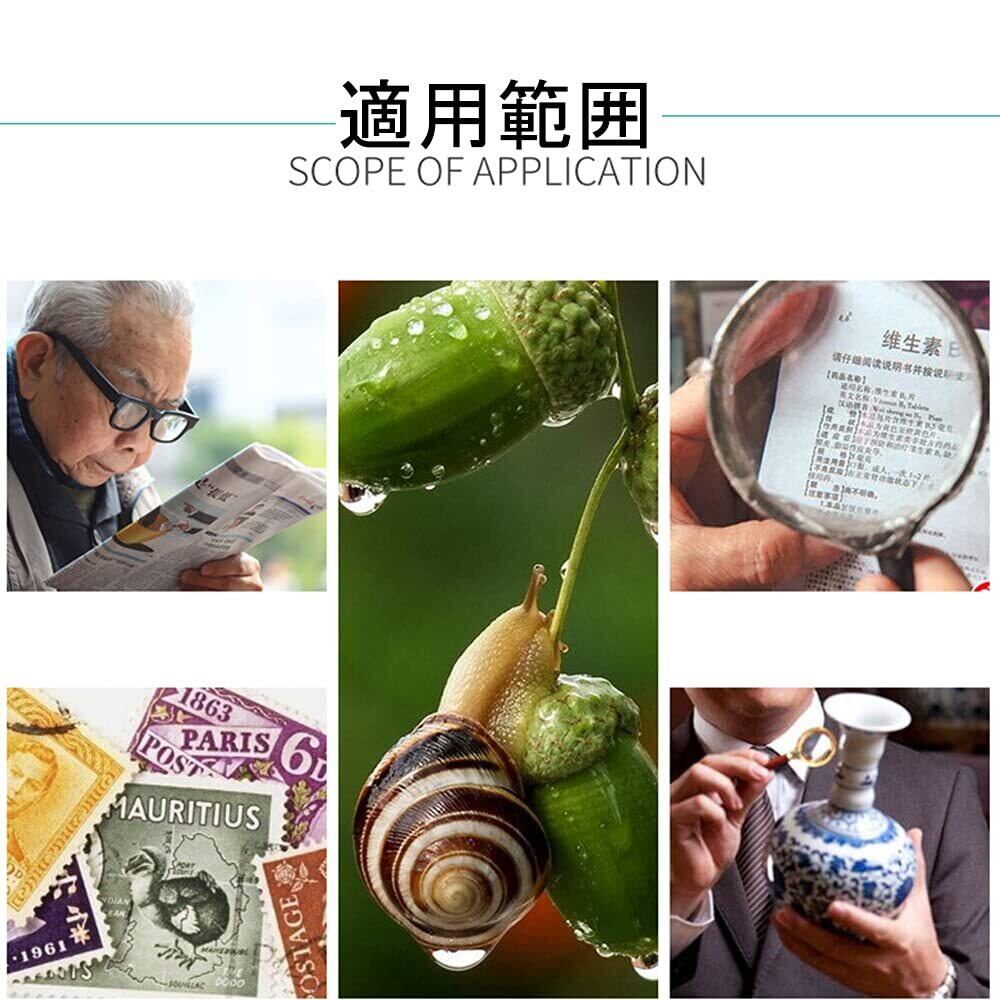 【特 徴】持ち手がプラスチックで軽量化しており手が疲れにくく、大きさのレンズで文字がとらえやすい設計になってます。