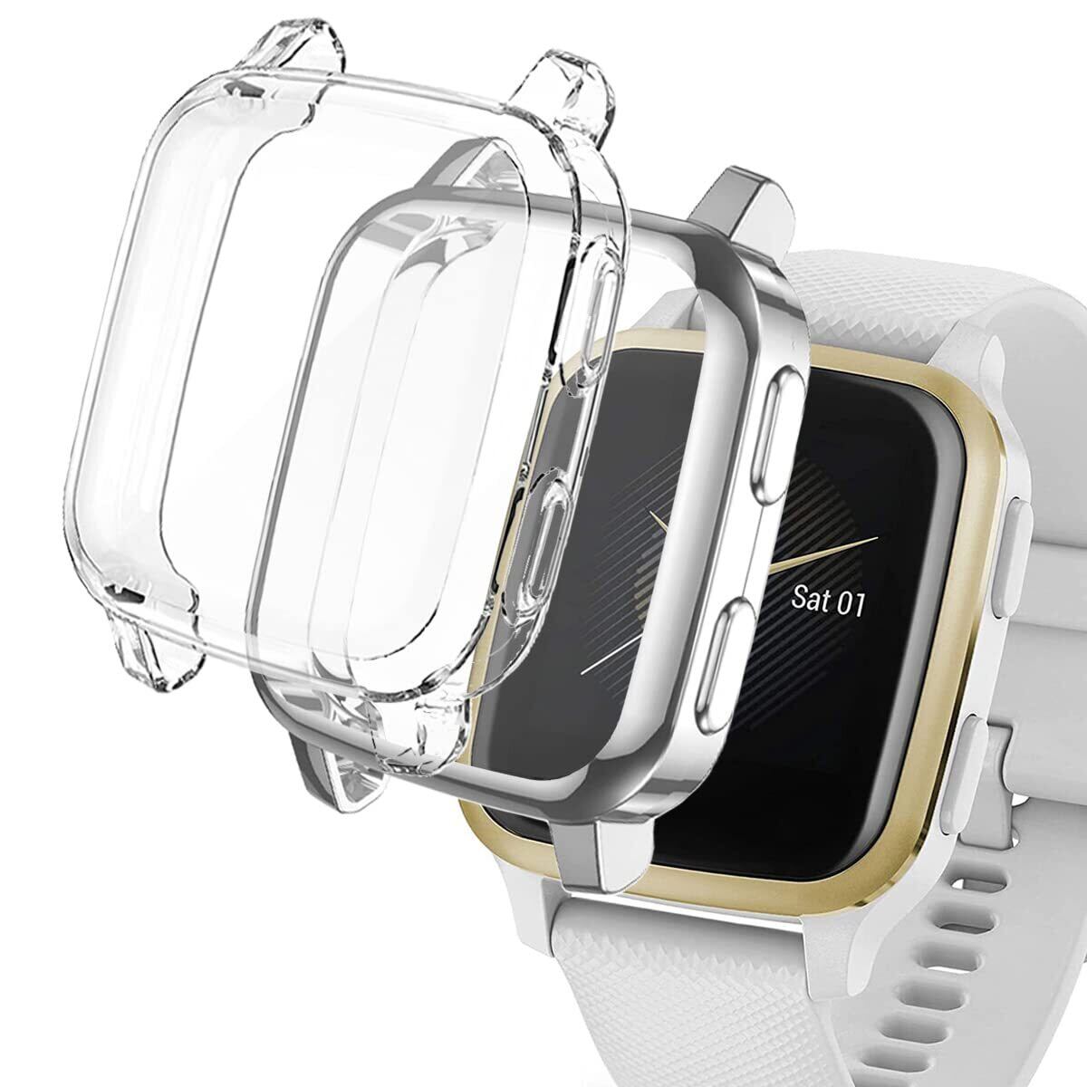 ONTUBE 2個 セット適応ガーミン Venu Sq/Venu Sq Music用 ケース メッキTPU製 スクリーンカバー ソフト 全面保護ケース (透明/銀)