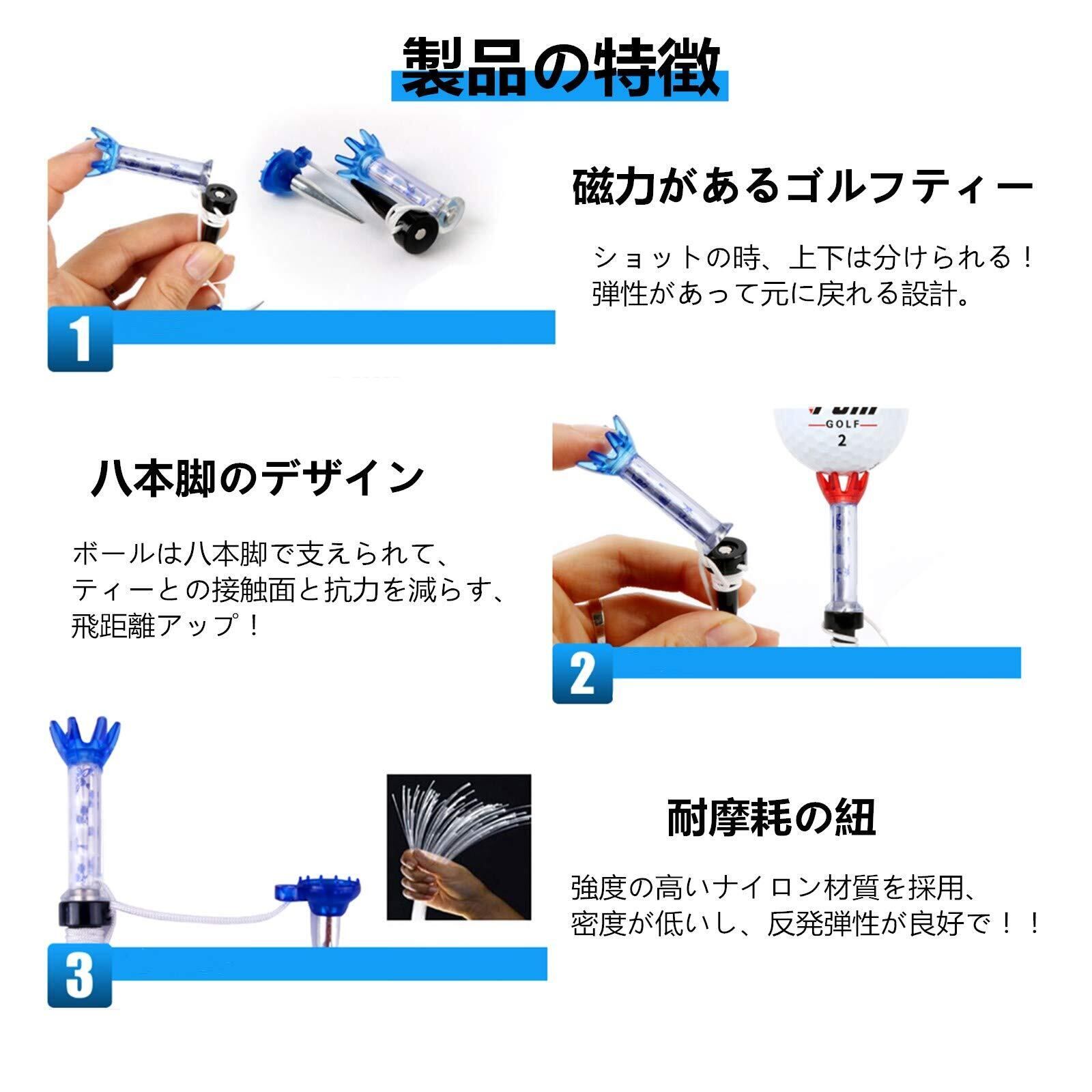 【マグネットティー】接合部分にマグネットを使用し、インパクト時の抵抗が少ない仕様で振り抜きやすい。ロープ付き、ティーを紛失しずらくします。