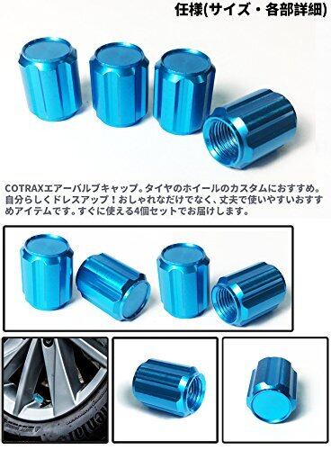【COTRAX】エアバルブキャップ アルミ製 ホイール タイヤ キャップ 軽 自動車 バイク 汎用パーツ ドレスアップ ギア型 ギヤ型 4個セット(スカイブルー)