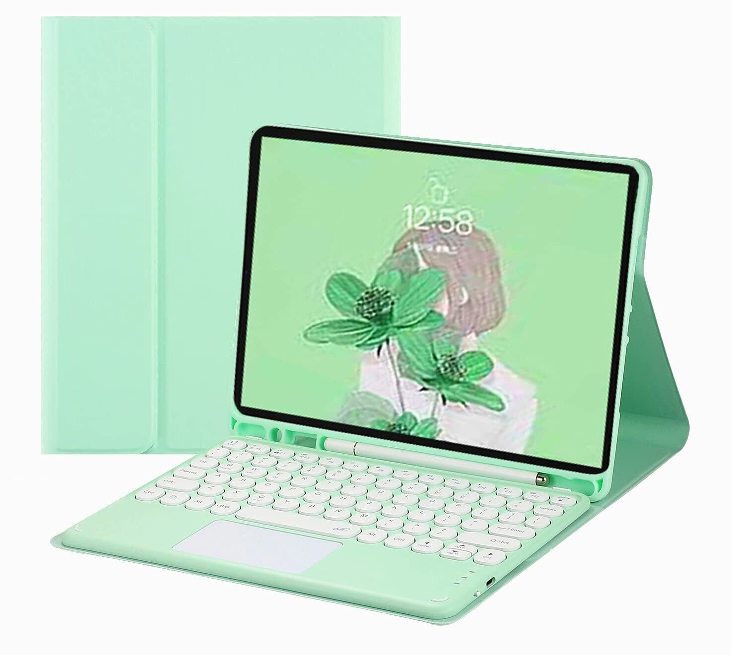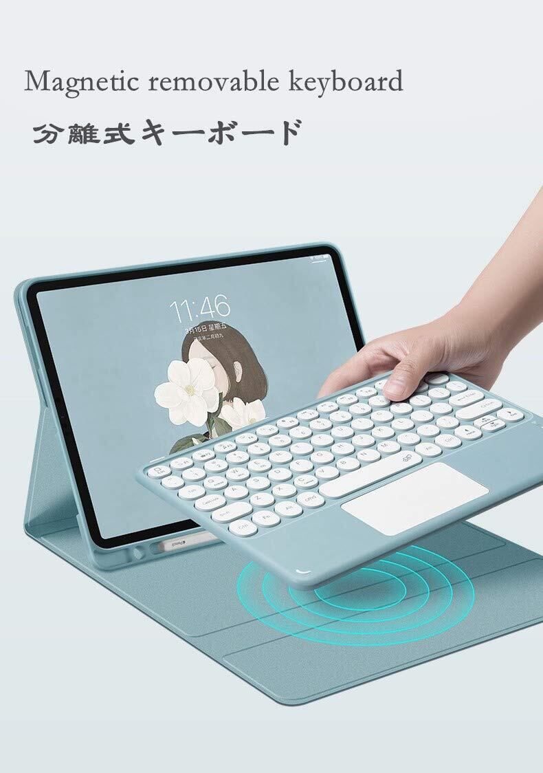 【在庫処分】タッチパッド付き iPad Air Air2 iPad5 iPad6 キーボード ケース 第6世代 第5世代 分離式 アイパッド9.7インチカバー キーボード付き 丸いキー カラフル ペンホルダー内蔵 マウス機能 手帳型 ワイヤレス 薄型 Bluetooth タッチキーボード ビジネス(薄緑) | ニコニコSHOP