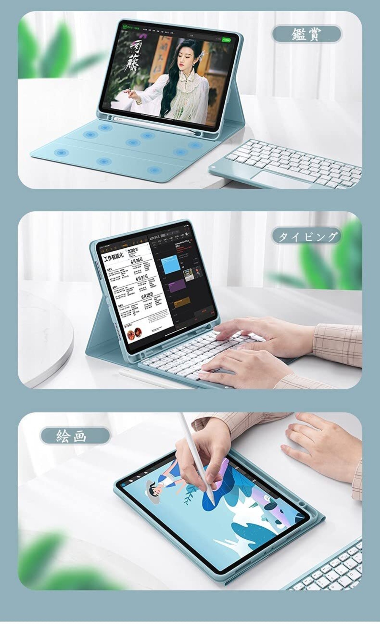 ➤着脱式キーボード付き:ワイヤレス接続脱着式キーボードと保護ケースの組み合わせで、分離式なのでカバーとキーボードは単体でのご利用も可能。キーボードはいつでも取り外すことができます。