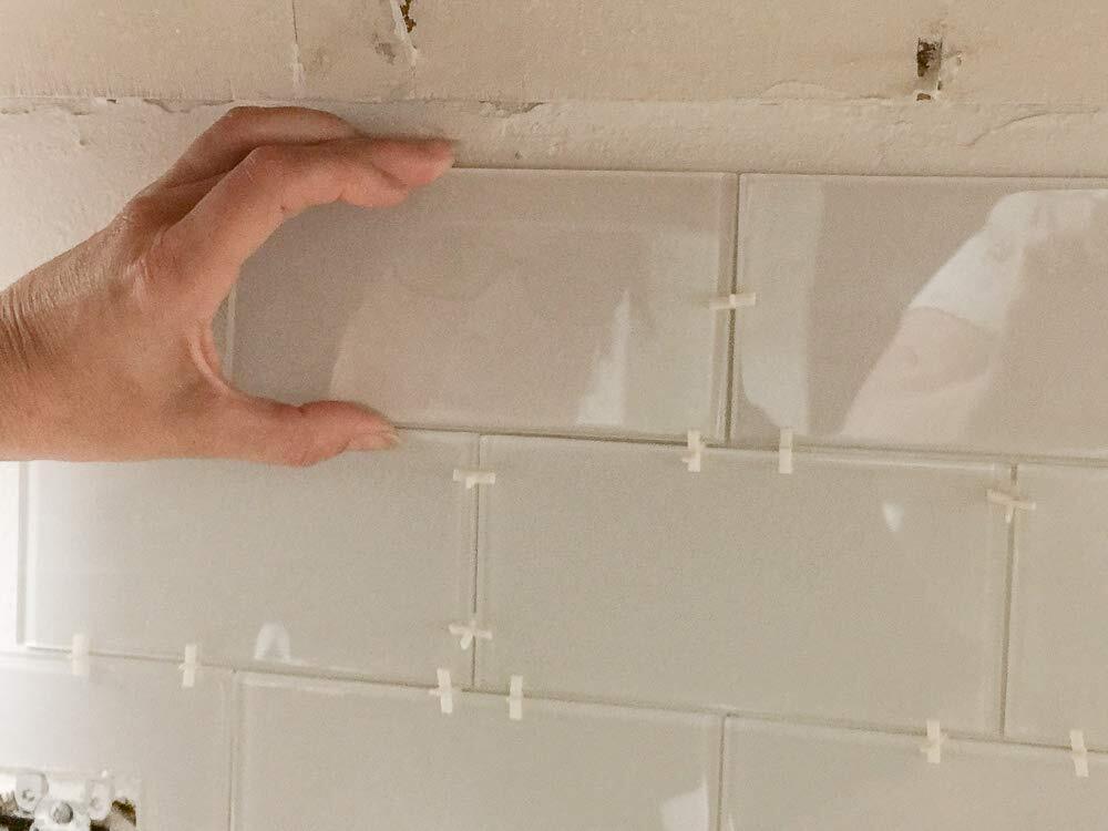 ●スペーサーを目地に挿入する場合は、タイル部分に飛び出さないようにないようにしっかりと押さえ込んで設置してください。