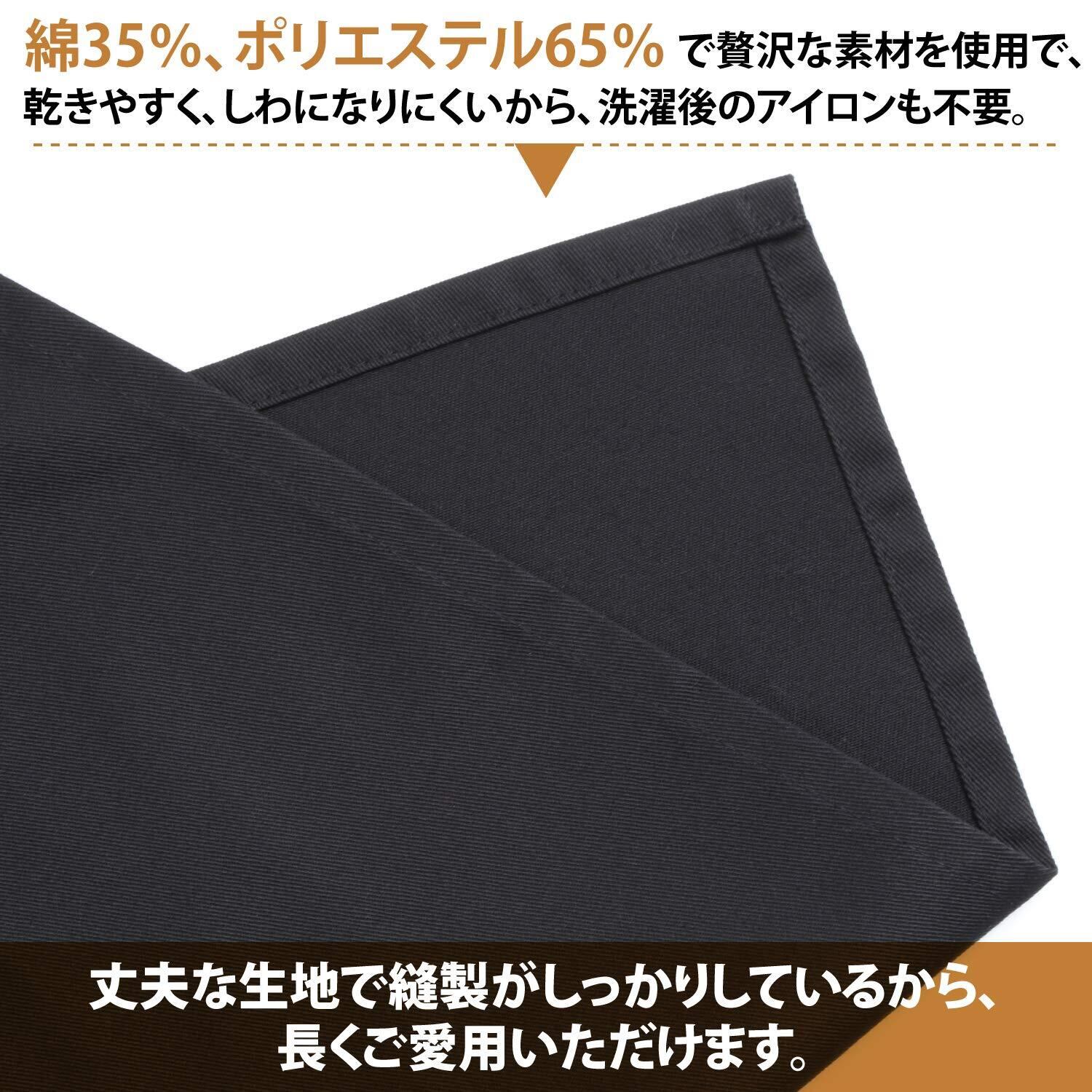 【3種のポケットで抜群の収納性】エプロン真ん中に、使い分けできるサイズ違いのポケットが複数設置。ポケット位置は通常より上に位置しているため、モノをいれても動きやすく、安定しています。A4サイズのノート、スマートフォン、ペン等、様々な用途で自由にご使用いただけます。さらに、名札をつける専用ポケットもありますので、商用、ビジネスシーンでも便利にご活用いただけます。