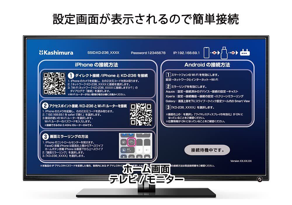 カシムラMiracastレシーバー HDMI 挿すだけワイヤレスでミラーリングNKD-236