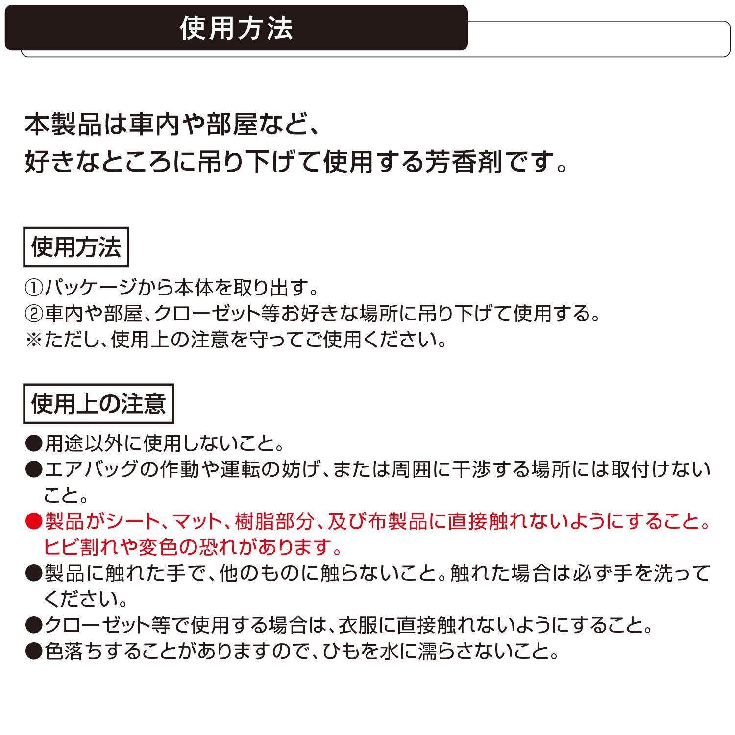 高濃度の香料をたっぷり浸み込ませたことで車内に本格フレグランスが広がります。