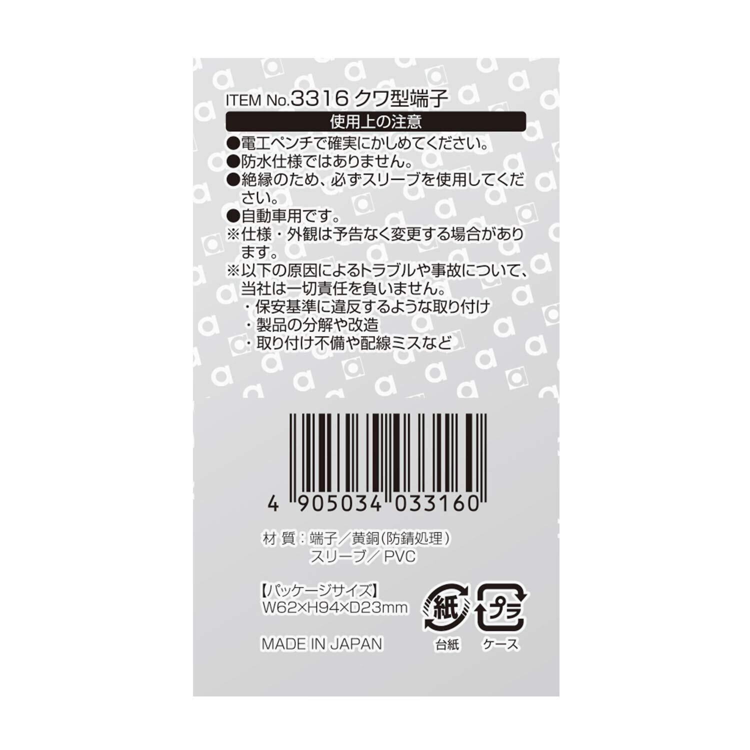エーモン(amon) クワ型端子 穴径φ6 AV(S)0.5~2sq 8個入 3316