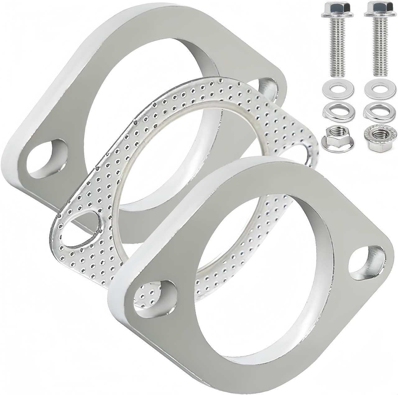 このマフラーガスケットは、ステンレス鋼製で、耐久性と強度があり、優れた耐酸化性、防錆性、耐腐食性、極端な温度耐性を持っています。穴サイズはφ60で、エキゾーストパイプ外径の異なる車両に合わせてご使用ください。取り付けは簡単で、六角ボルトとナットを使用して2つのフランジを接続し、2つのフランジのシール面の間にガスケットを置き、ナットを締めてパイプ接続を固定してシールします。また、ボルトからボルトまでの距離ちょうどいい、楕円形の穴は排気フランジをロックするのに便利で、排気管の接続に非常に適しています。カスタム排気プロジェクトや排気修理に最適です。