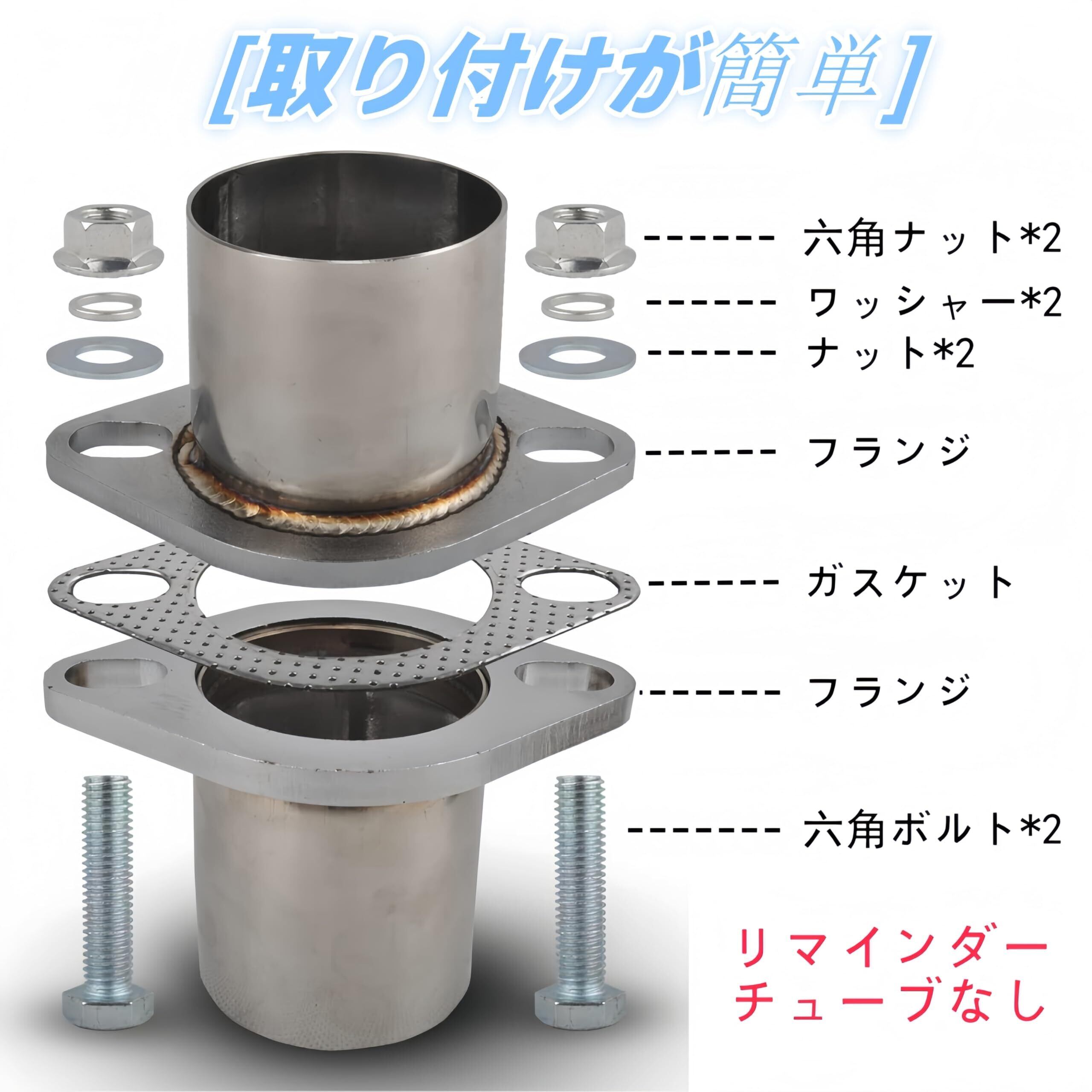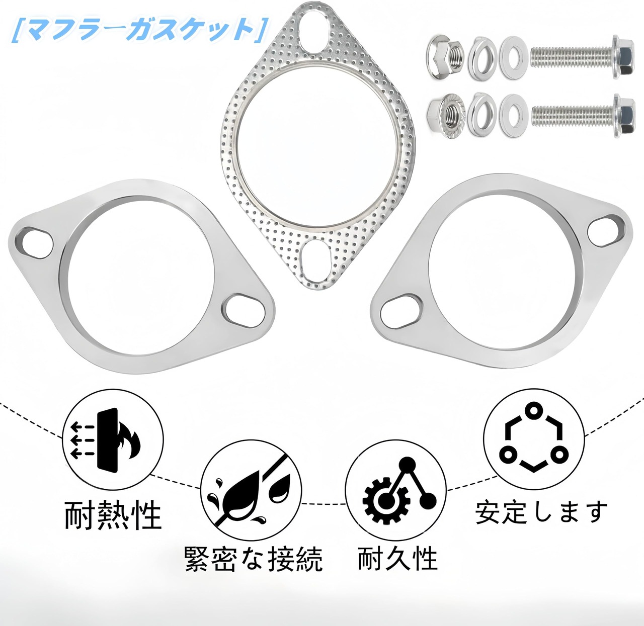 【パッケージ一覧】マフラーガスケット含む 2個フランジ、1個ガスケット、2個フランジ六角ボルト、2個フランジ六角ナット、ナット、ワッシャーが含まれます。