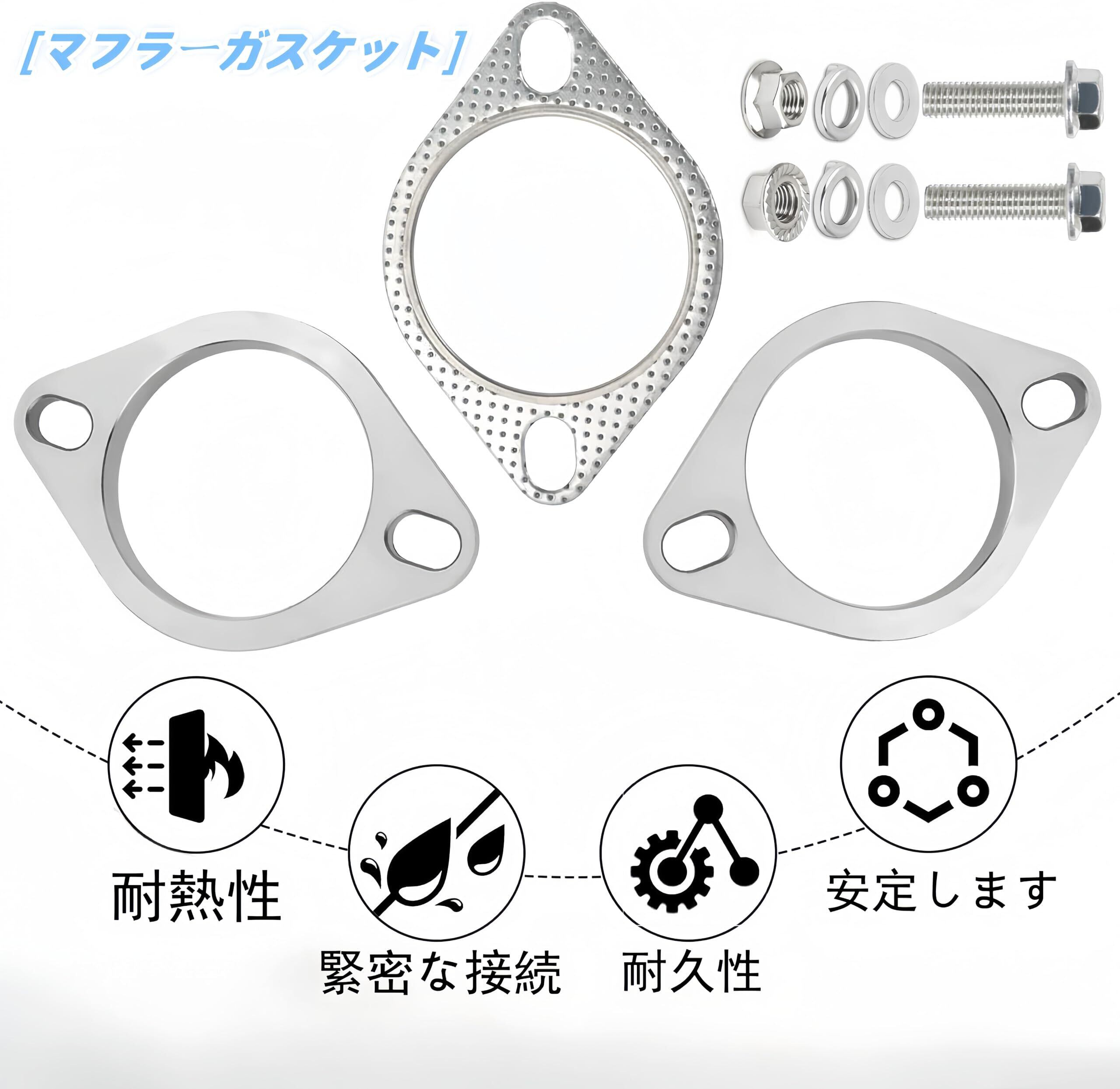 Korekaou マフラーガスケット 1セット ステンレス マフラー フランジ ボルトナット付き 汎用 車 サイレンサー ガスケット (φ60)