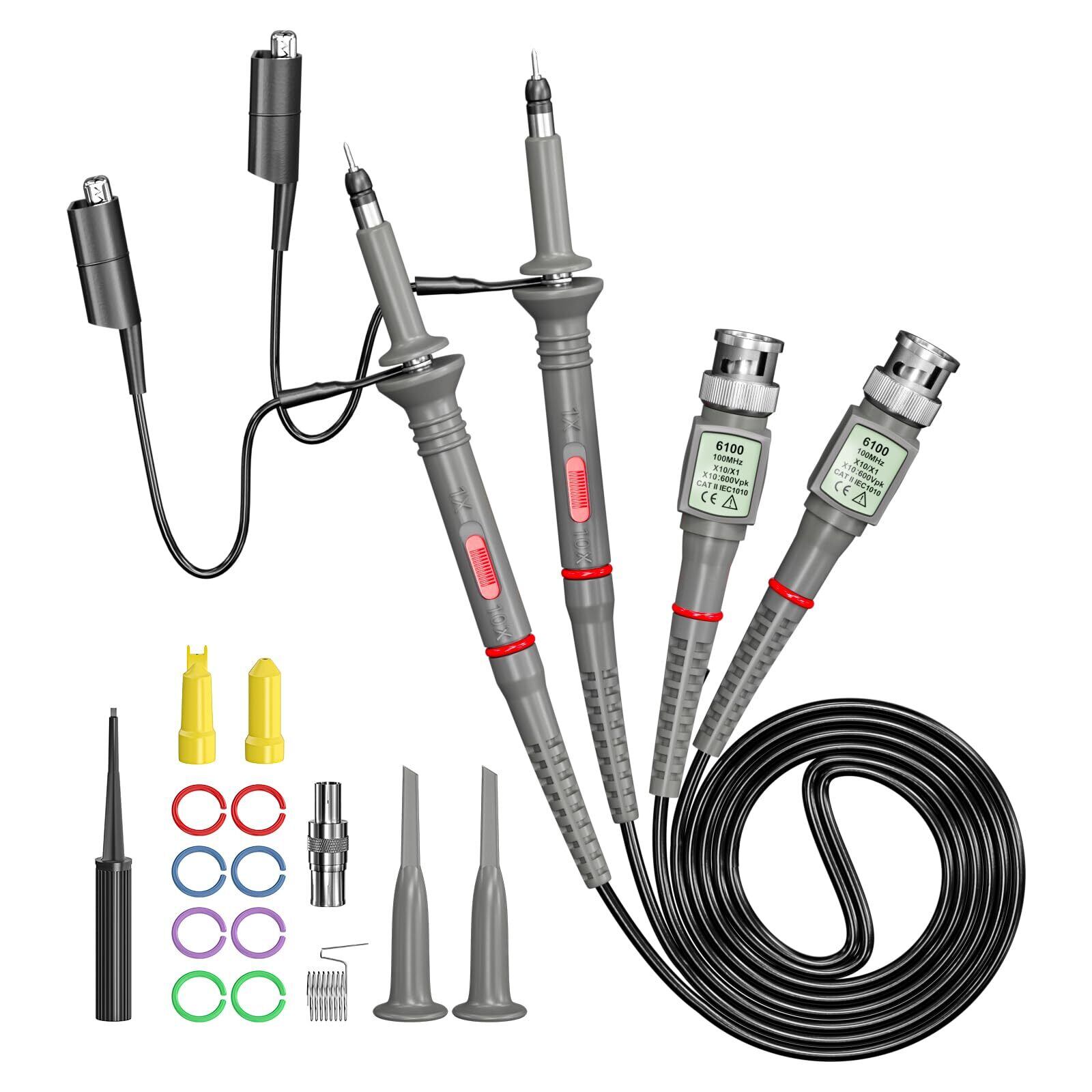Cleqee 2本組 オシロスコープ プローブ P6100 1X 10X 100MHz DSO 同軸BNC接続 電子工作ツール 測定用 高電圧 テストプローブ アクセサリキット付き 電子日本語取扱説明書