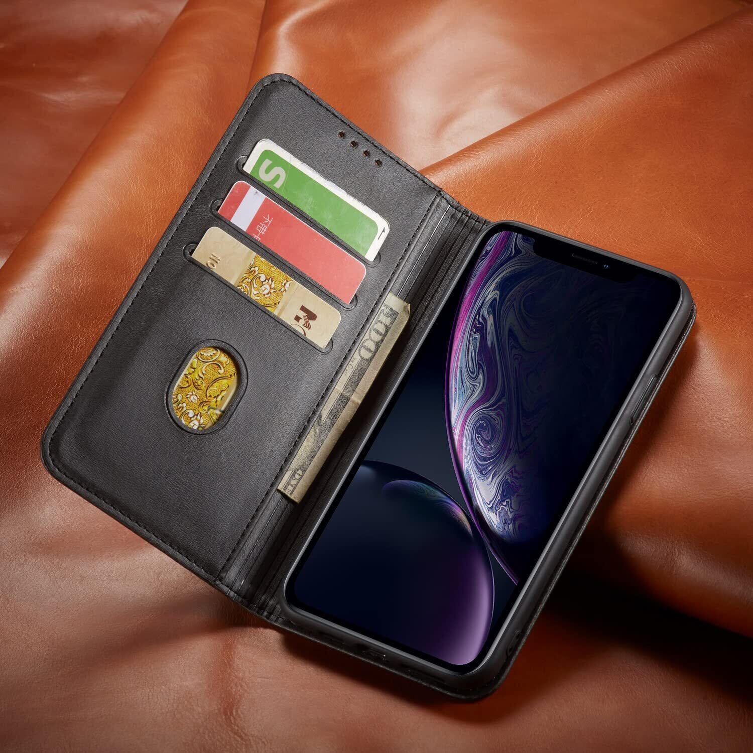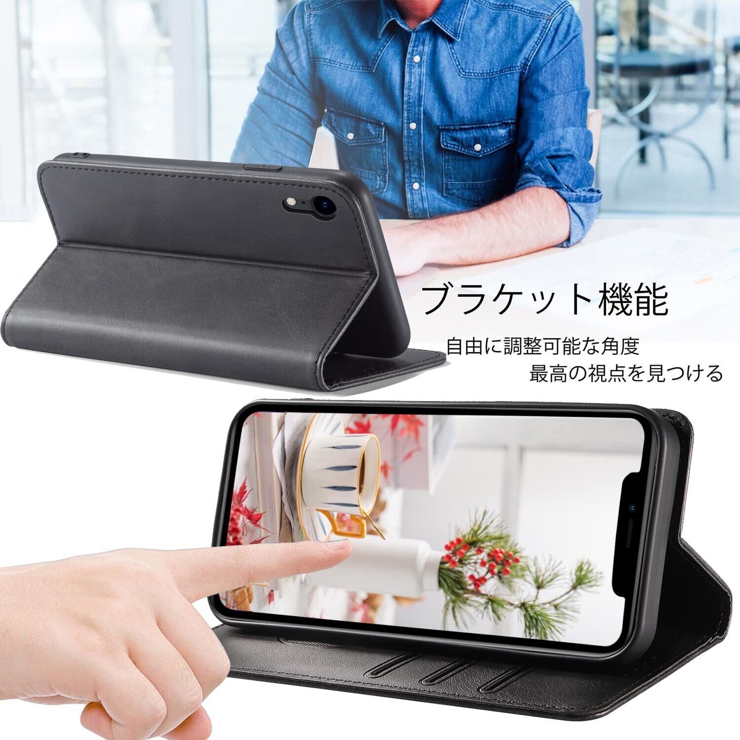 iphone xr ケース iphonexr ケース イフォン xr ケース スマホケース 手帳型 携帯カバー レザー 耐衝撃 軽量 着脱しやすい 放熱性 マグネット式 カード収納 スタンド機能 iphone ケースxr 対応 360度保護 PinLiSheng (iphone xr, ブラック)