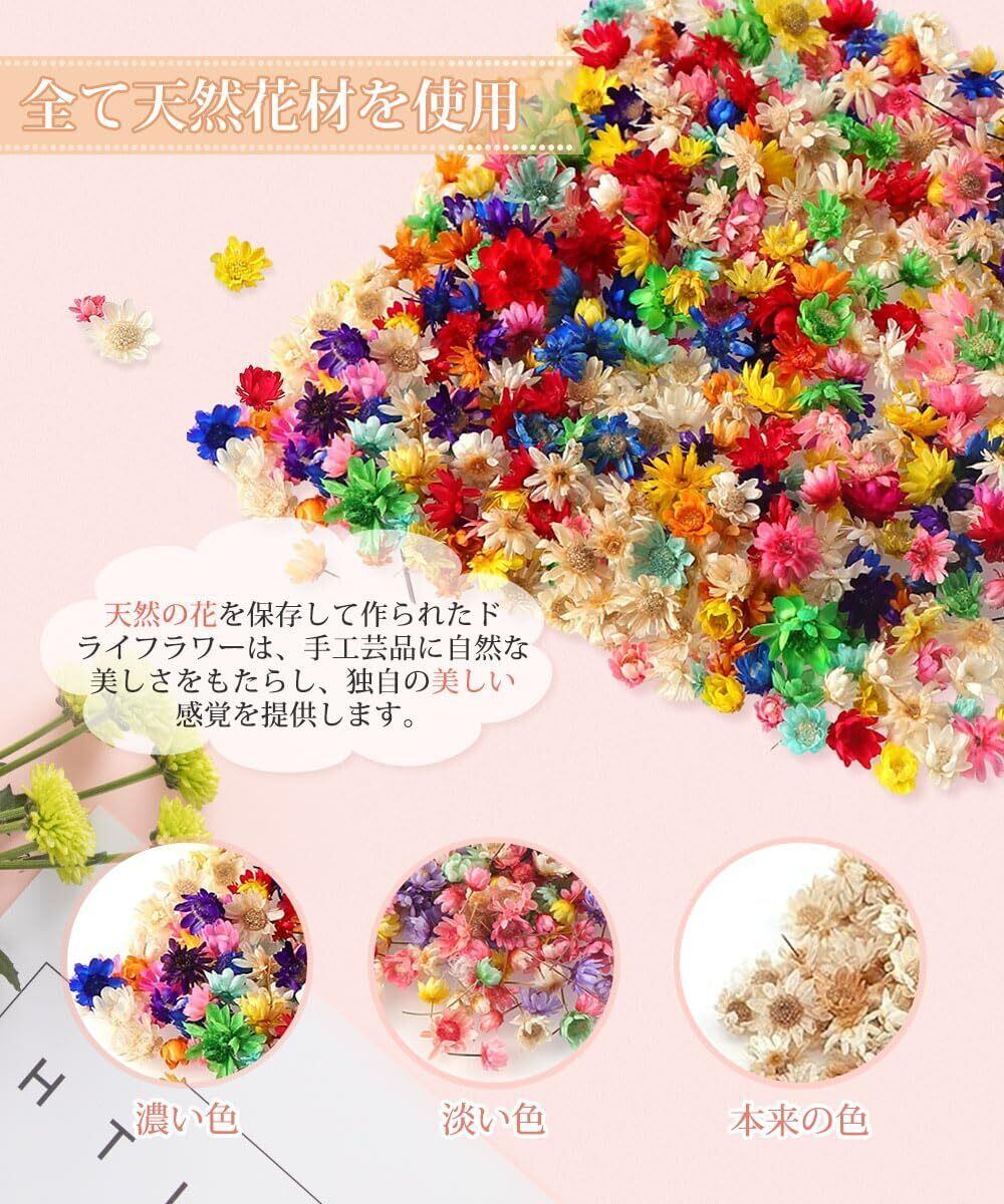 【天然花のため】すべてのドライフラワーはプラスチックではなく天然の花で作られており、すべて独自の色と形があります。