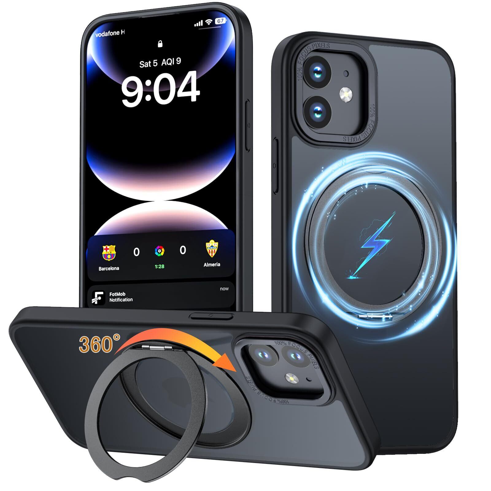 【在庫セール】iPhone 11 用 ケース Magsafe対応 ワイヤレス充電 360°回転スタンド 縦横両対応 Gunwon スマホケース iphone11 用 米軍規格 耐衝撃 半透明 マット感 マグセーフ 防指紋 リング マグネット搭載 アイフォン11 用 カバー「ブラック」 | ニコニコSHOP