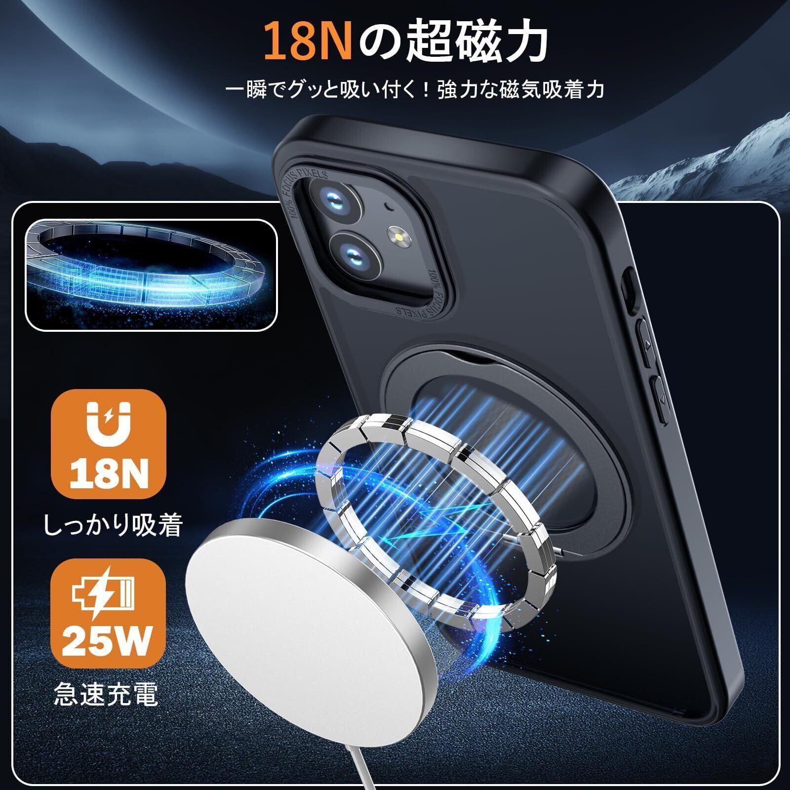【MagSafe対応・磁力アップグレード】:強力なN52磁石を搭載しており、磁石吸着力は従来より10倍高め、ケースを装着したまま高速ワイヤレス充電が可能です、充電時の熱を周囲に発散して。Magsafe充電がかつてないほど簡単にできます!強い磁力により車運転中の激しい振動でもMagsafe車載ホルダーから外れることなく、市販のあらゆるMagsafeアクセサリーに簡単対応!いくら振っても落ちないので、充電しながらゲームをやっても問題なし!【 iphone 11 用 ケース アイフォン11 用 ケース アイホン11用ケース】