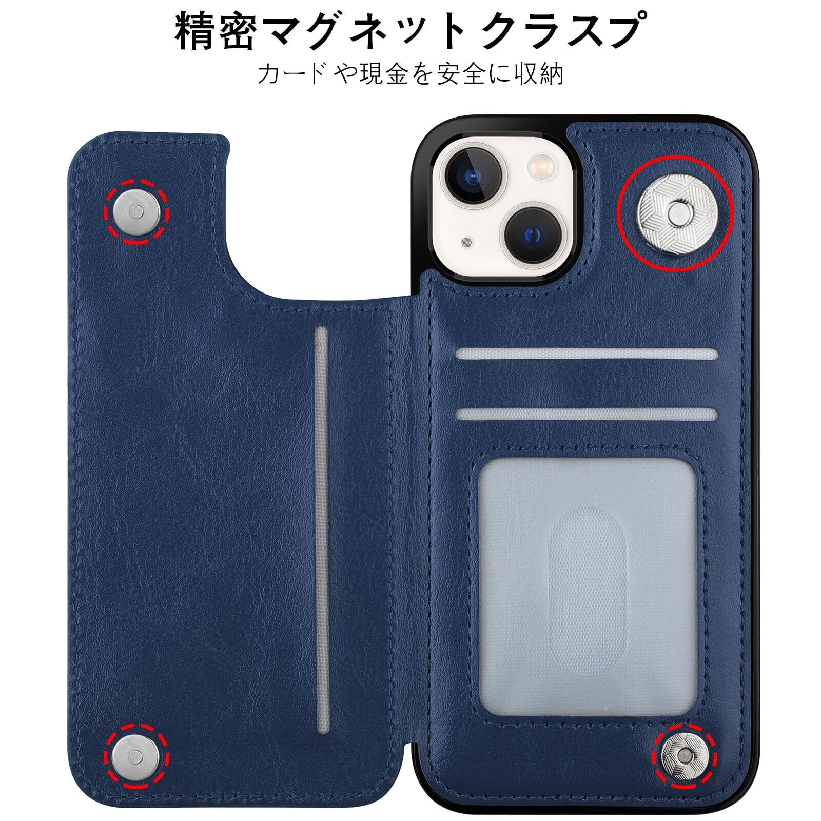 iPhone 14 ケース 手帳型 ケース 耐衝撃 いphone14 ケース カード収納 アイフォン14 ケース PUレザー 財布型 スマホケース スタンド機能 マグネット式 携帯カバー 落下防止 おしゃれ アイホン14ケース ネイビー